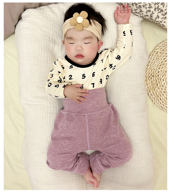 DeRong 하이 웨이스트 대형 PP 배꼽 보호 바지 아기 따뜻한 바지 아기 바지 소년과 소녀 뼈없는 레깅스 긴 잠옷스토어 가기