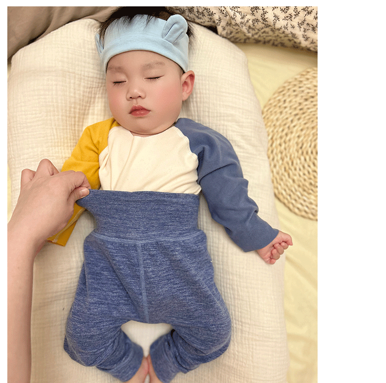 DeRong 하이 웨이스트 대형 PP 배꼽 보호 바지 아기 따뜻한 바지 아기 바지 소년과 소녀 뼈없는 레깅스 긴 잠옷