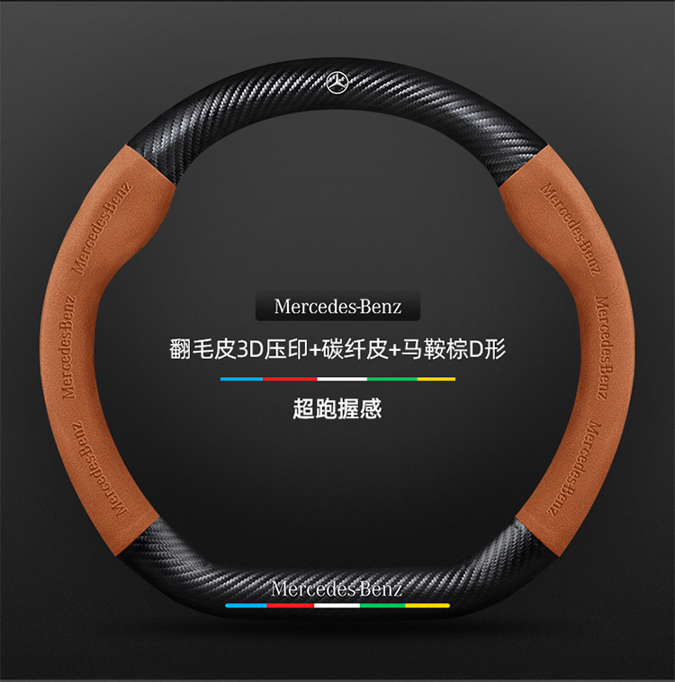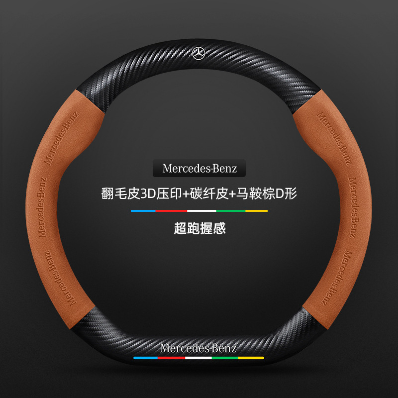 • D자형/탄소섬유 가죽 + 모카 다크 브라운 + 메르세데스-벤츠 규격
