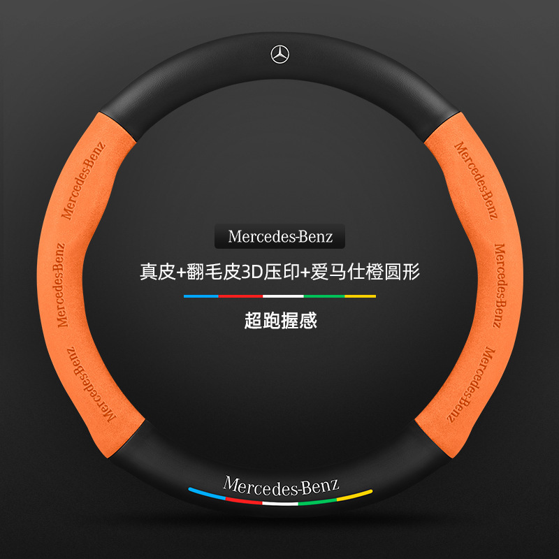 • D자형/정품 가죽 + 에르메스 오렌지 + 메르세데스-벤츠 로고