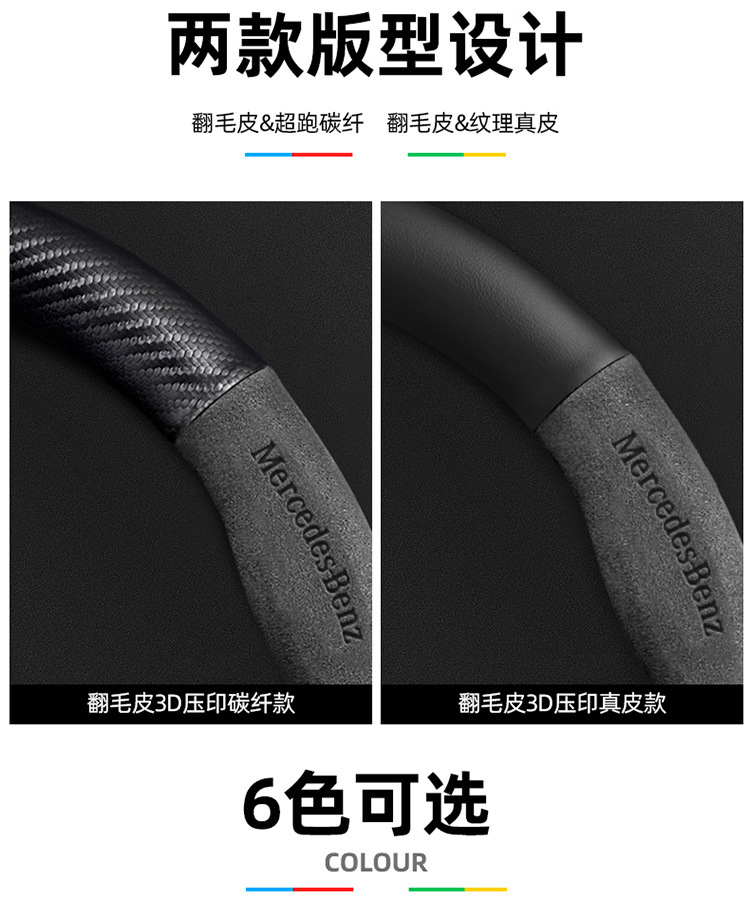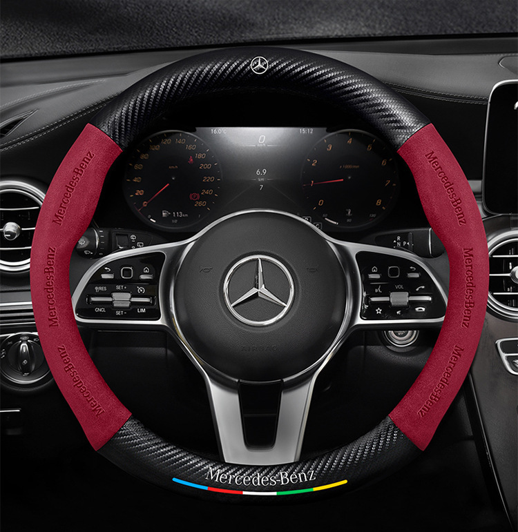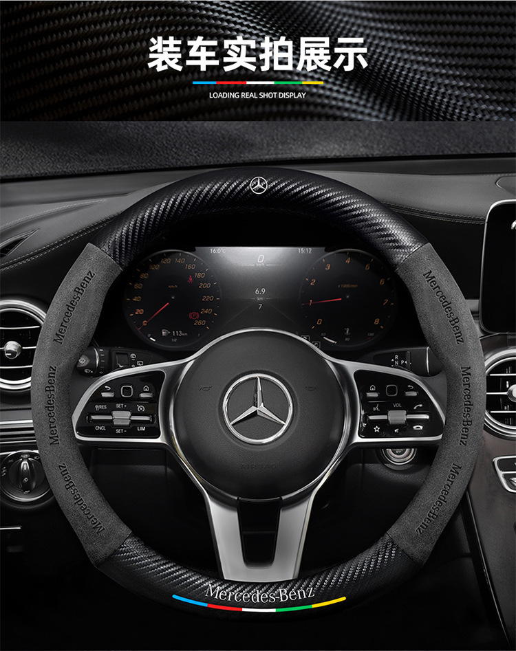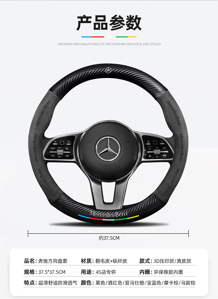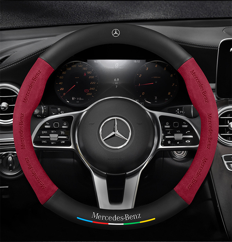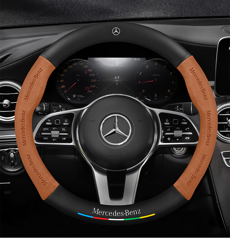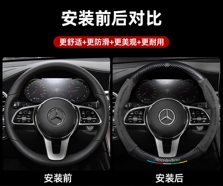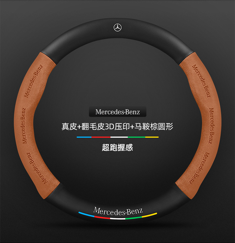 메르세데스-벤츠 스티어링 휠 커버 R/A/S/E/C 클래스 GLC c260l c200l 가죽 모피 자동차 핸들 커버에 적합스토어 가기