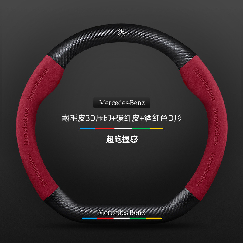 • D 자형/탄소 섬유 가죽 + 버건디 + 메르세데스-벤츠 표준