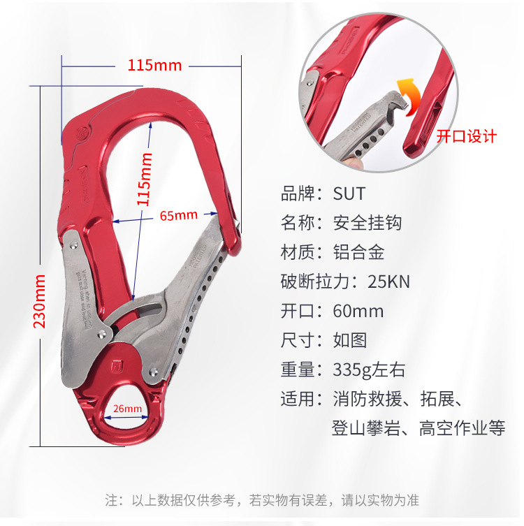 안전 회전 대형 후크 60mm6cm 6cm 개방 알루미늄 합금 대형 안전 후크 메인 잠금 빠른 걸이 커넥터