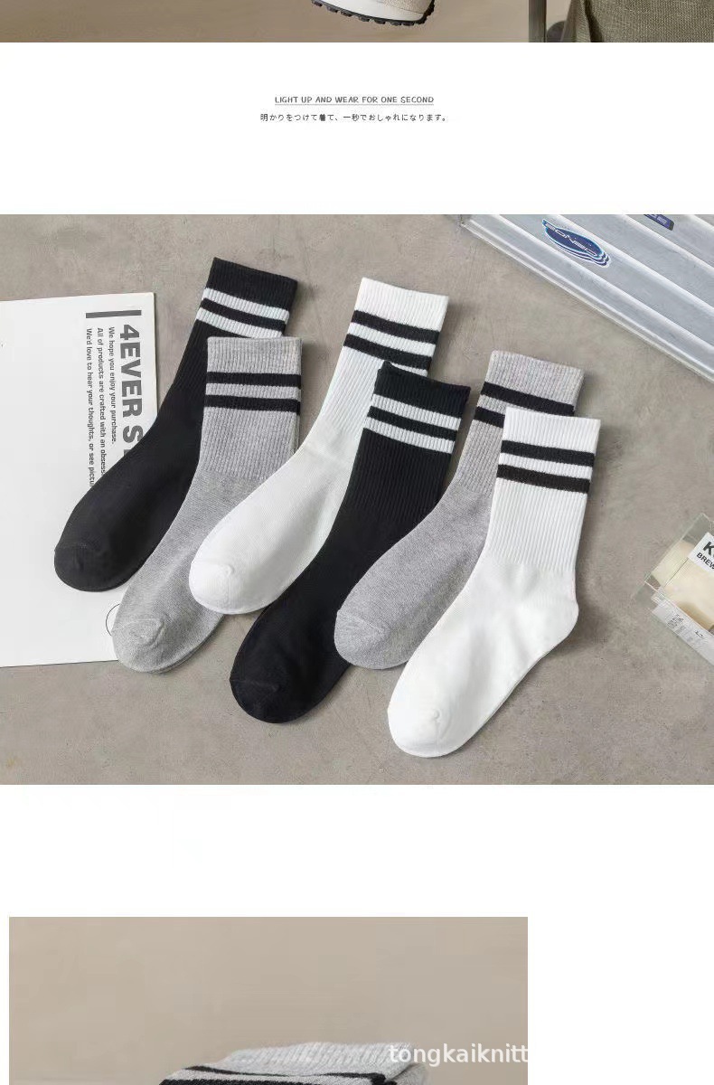 상어 바지 양말 여성용 흑백 회색 평행 바 튜브 양말 순면 그물 레드 캐주얼 스포츠 스타킹 트렌드