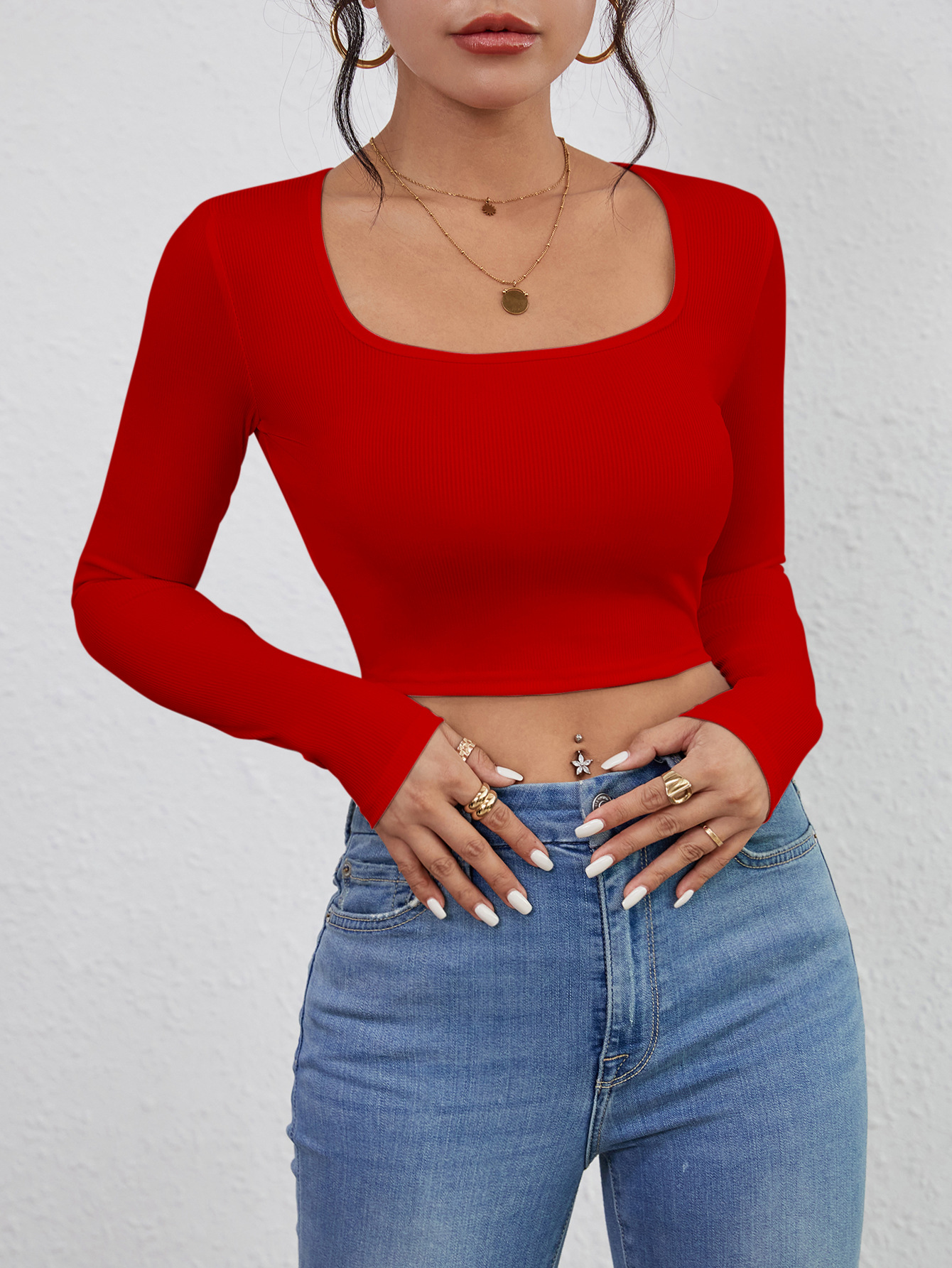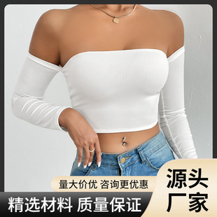 유럽과 미국 크로스 보더 조끼 슬림핏 짧은 섹시한 탑 배꼽 핫 걸스 모든 매치 아우터 슈퍼 롱 슬리브 베이스 셔츠