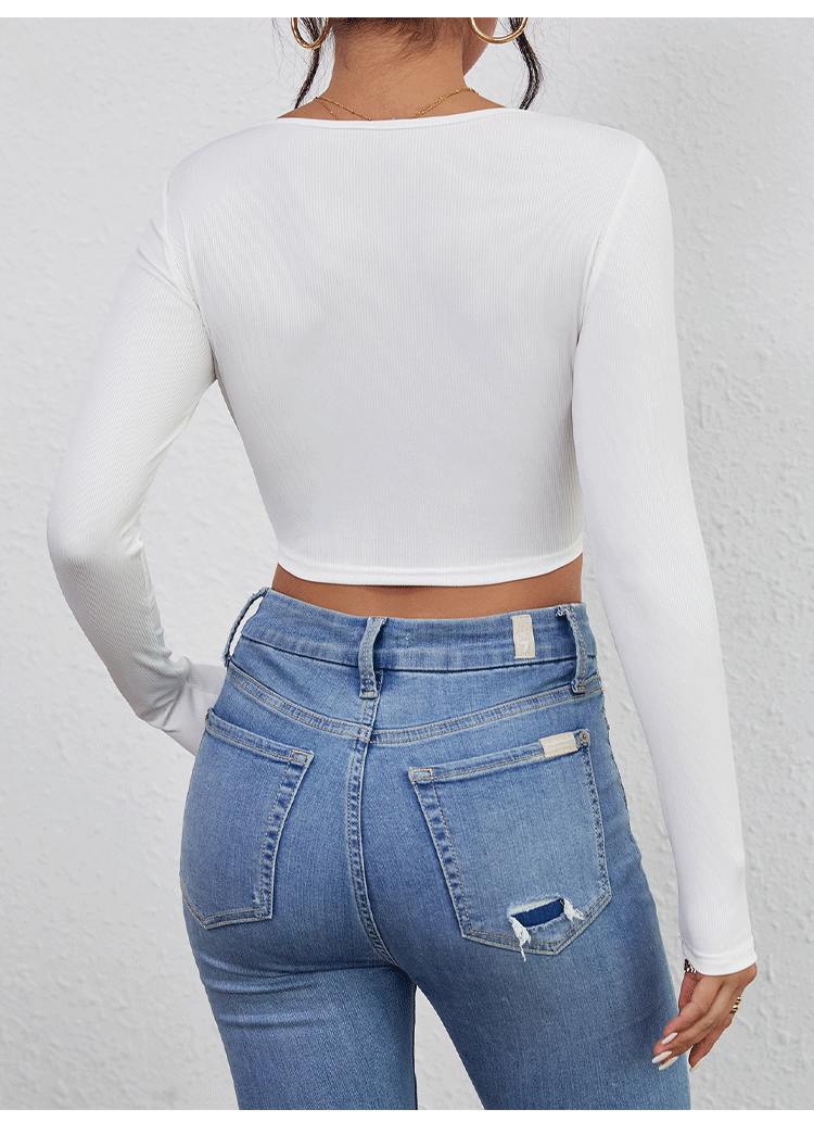 유럽과 미국 크로스 보더 조끼 슬림핏 짧은 섹시한 탑 배꼽 핫 걸스 모든 매치 아우터 슈퍼 롱 슬리브 베이스 셔츠스토어 가기