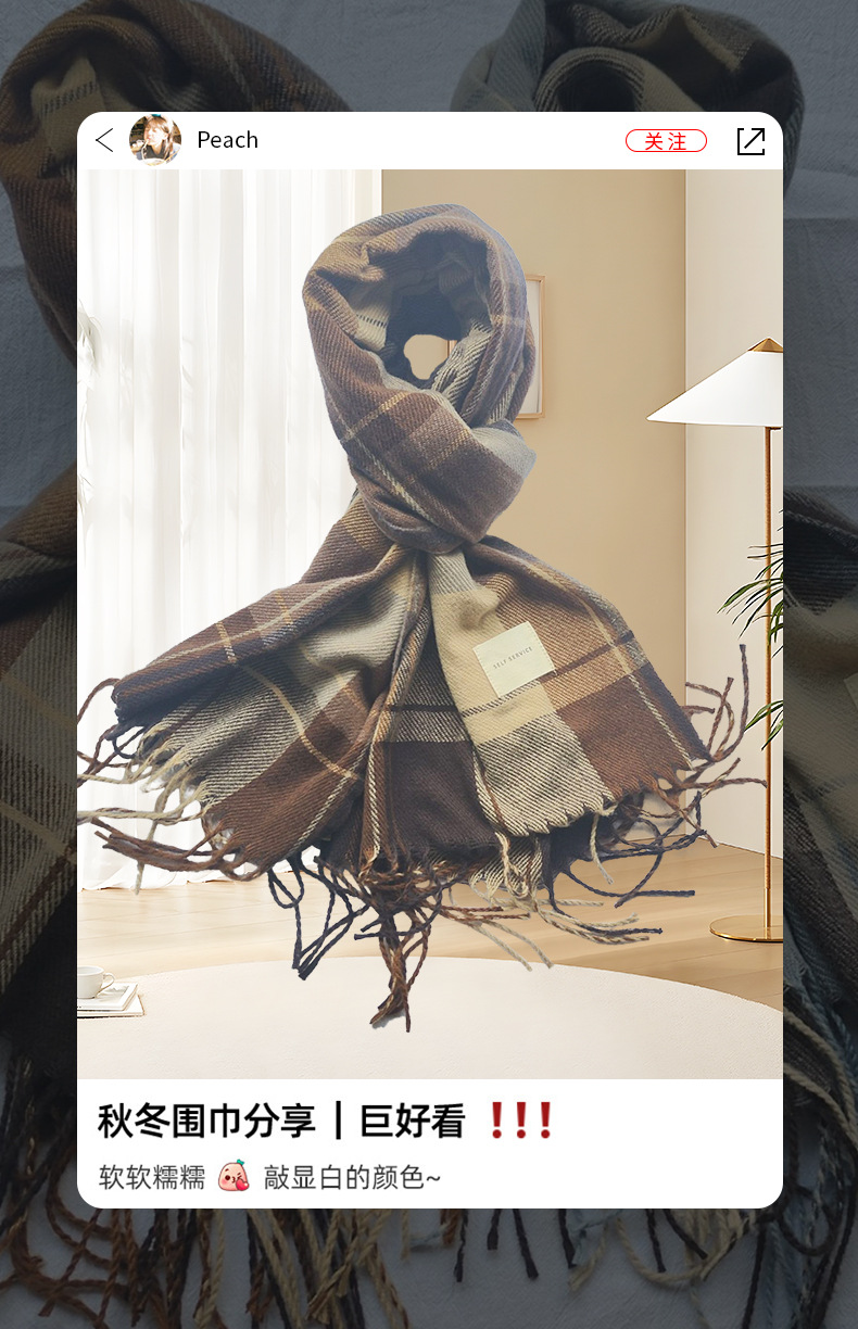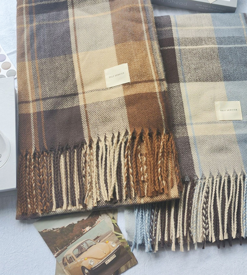 체크 무늬 스카프 여성 가을과 겨울 2023 새로운 스타일 숄 이중 사용 한국식 모든 매치 고급 스카프 두꺼운 따뜻한 인스토어 가기