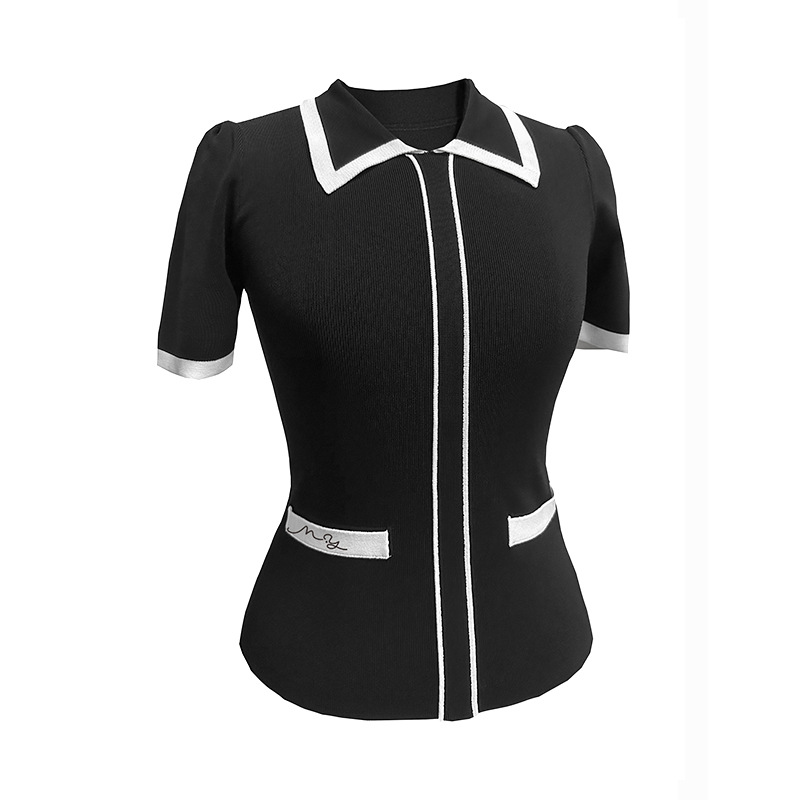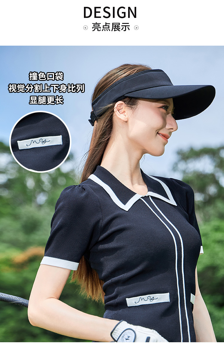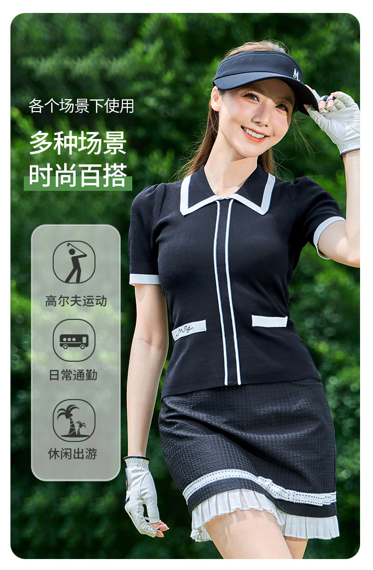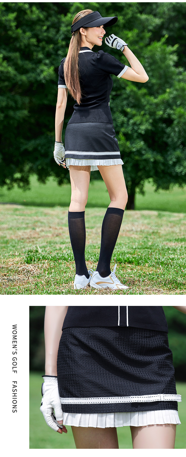 MY 골프 의류 여성용 새로운 블랙 세트 샤넬 스타일 반팔 탑 니트 저지 슬림핏 스커트스토어 가기