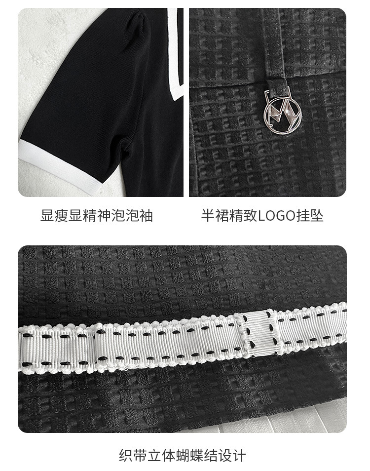 MY 골프 의류 여성용 새로운 블랙 세트 샤넬 스타일 반팔 탑 니트 저지 슬림핏 스커트