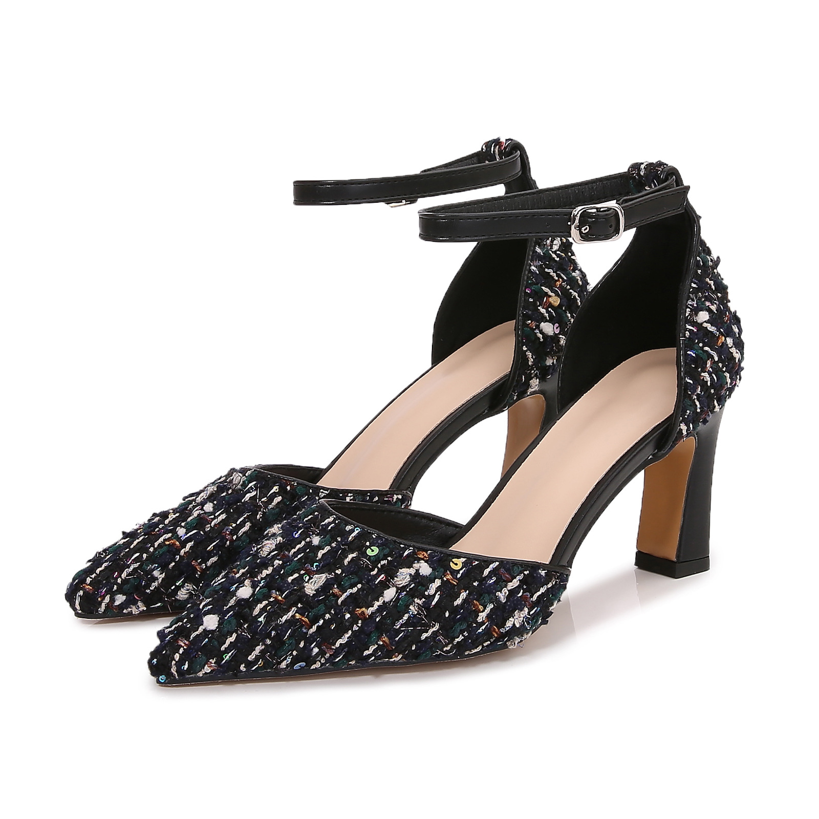 블랙 전문 하이힐 신발 여성용 두꺼운 굽 뾰족한 2023 중공 요정 스타일 Baotou 샌들과 신상품 단일 레이어 신발스토어 가기