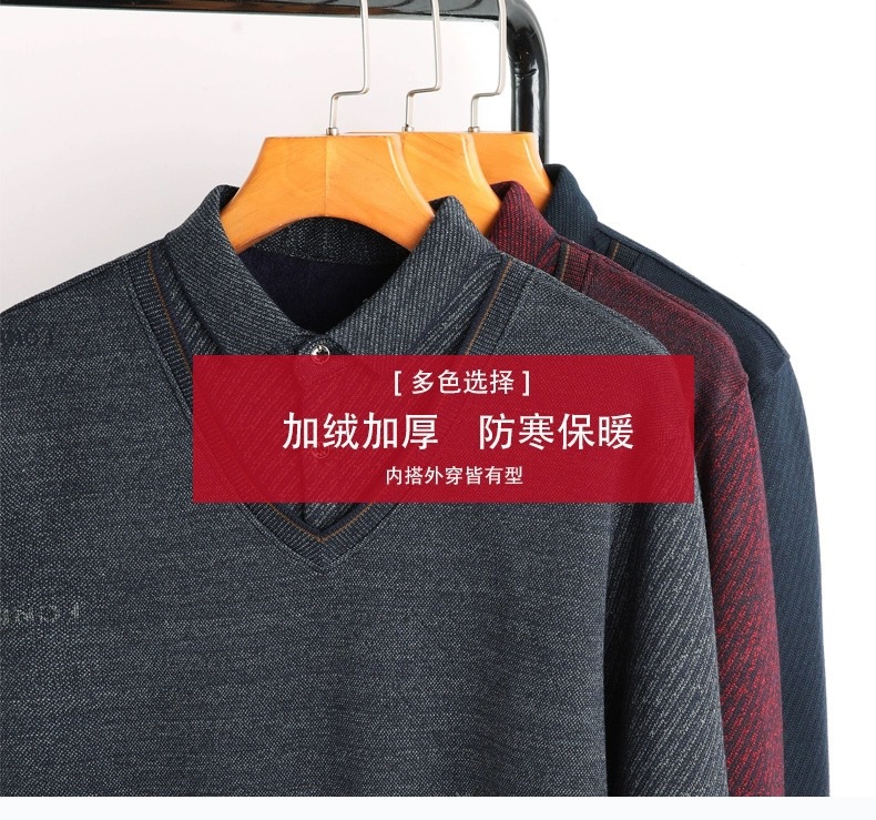 중년 기모 두꺼운 스웨터 남자의 중년 및 노인 남자의 가짜 투피스 티셔츠 아빠의 겨울 니트 따뜻한 탑스토어 가기