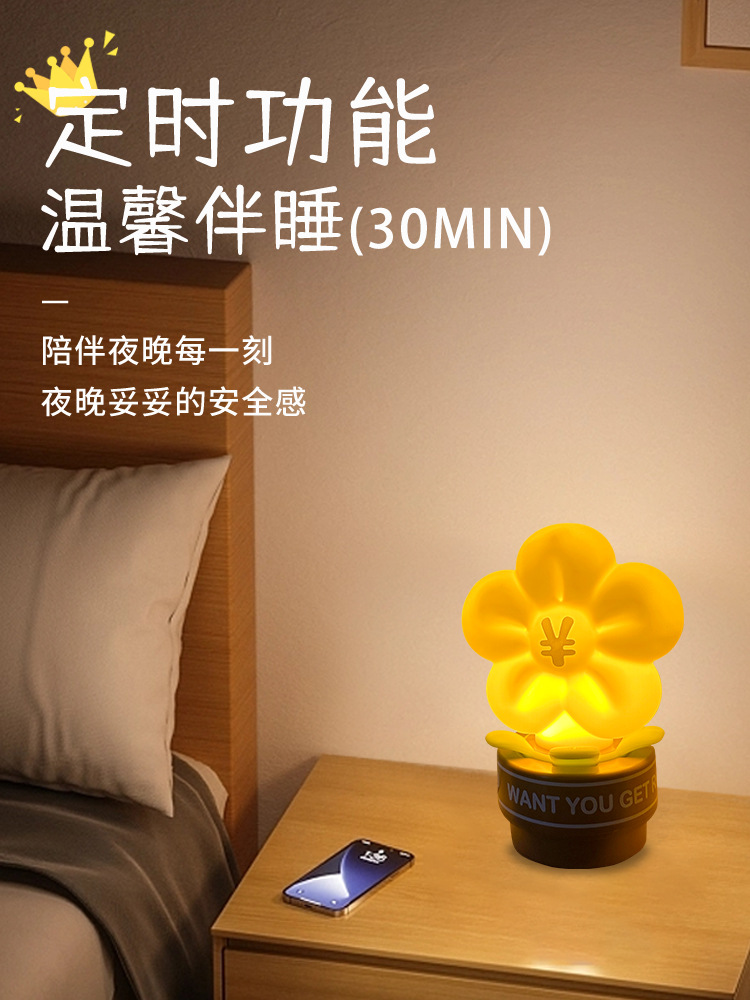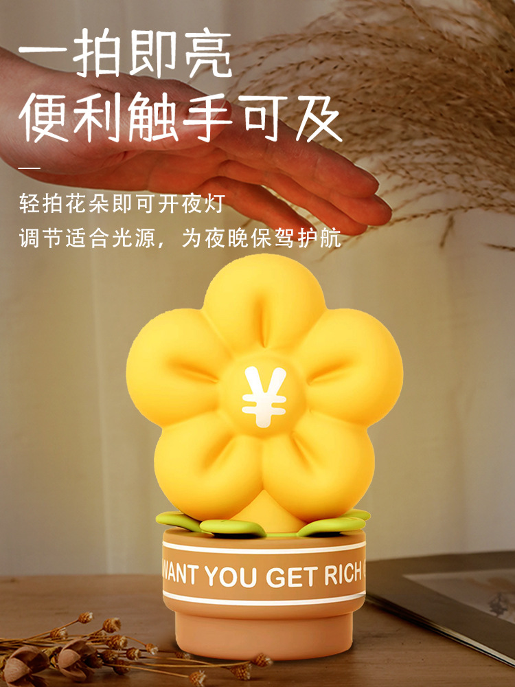 풍부한 꽃 실리콘 분위기 램프 USB 충전 3 소프트 라이트 팻 인덕션 램프 침실 침대 옆 타이밍 야간 조명