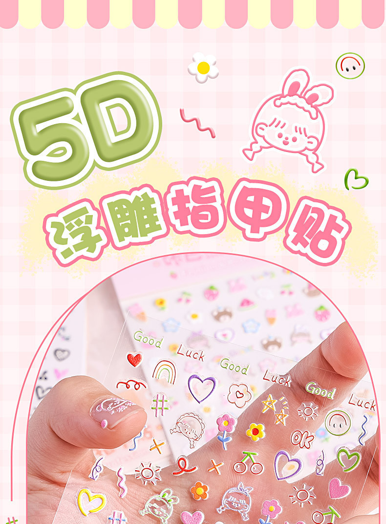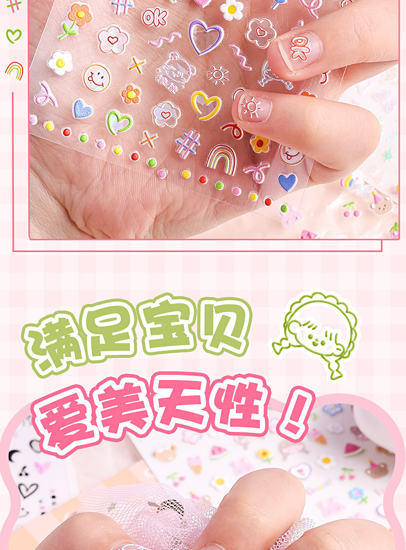 네일 스티커 장식 작은 패턴 네일 스티커 만화 스티커 5d 양각 손 계정 goo 카드 소재 휴대 전화 케이스스토어 가기