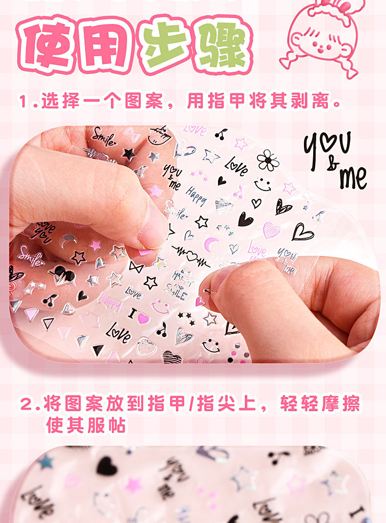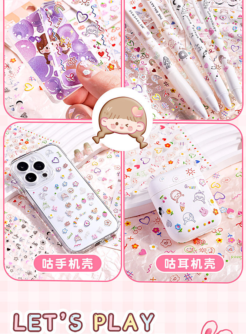 네일 스티커 장식 작은 패턴 네일 스티커 만화 스티커 5d 양각 손 계정 goo 카드 소재 휴대 전화 케이스