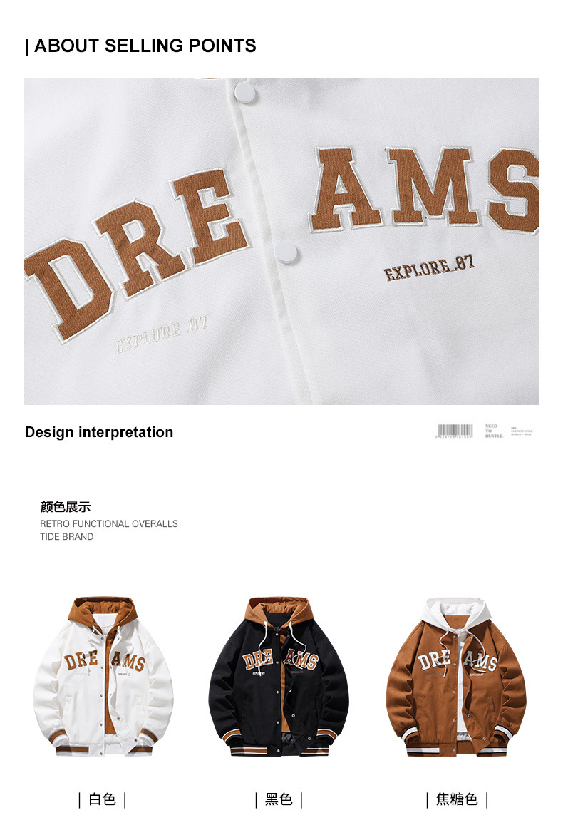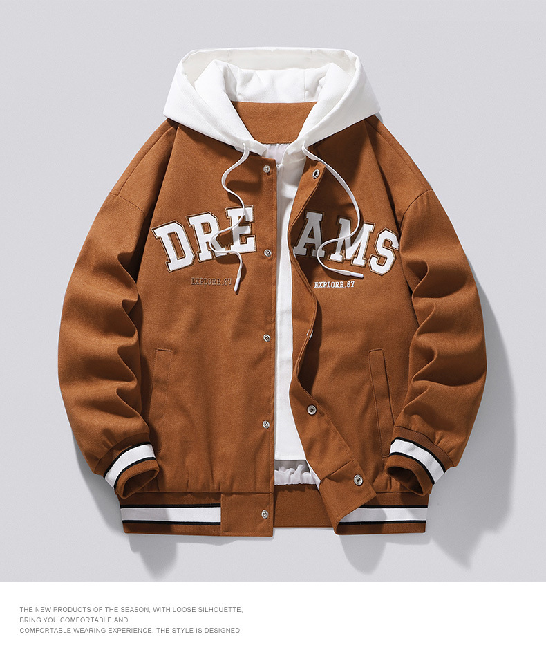 새로운 봄과 가을 남자 캐주얼 후드 재킷 겨울 소년 야구 세트 가짜 두 커플 작업복 재킷 탑스토어 가기