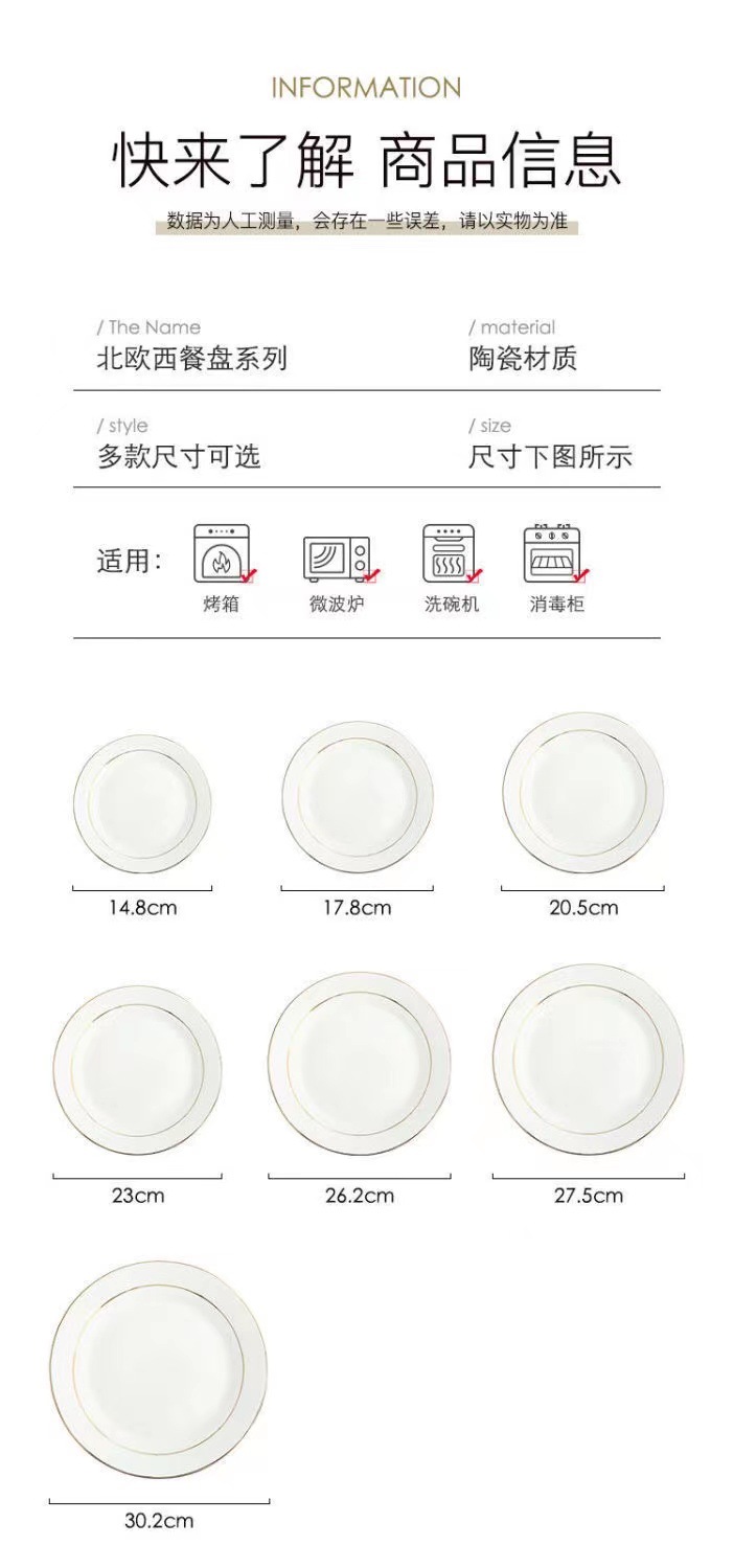 호텔 웨스턴 레스토랑 디너 플레이트 유럽식 프놈펜 도자기 플레이트 라운드 얕은 플레이트 플랫 플레이트 스테이크 플레이트 가정용 식기스토어 가기