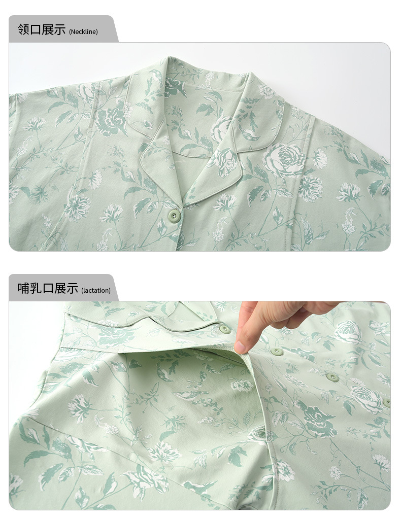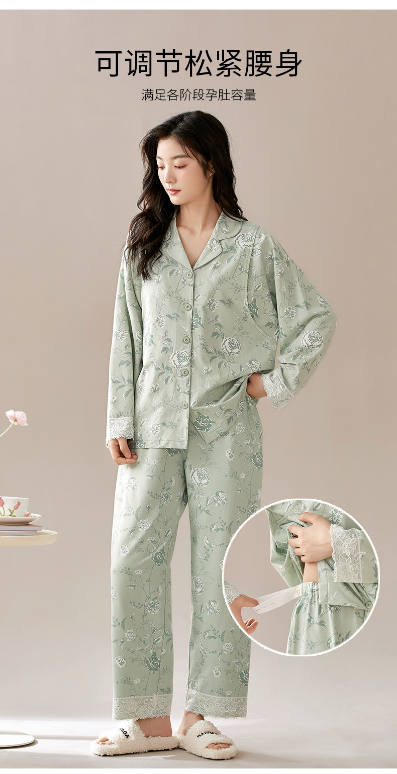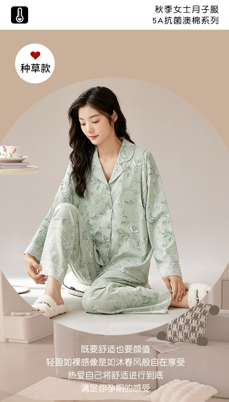 가을과 겨울 새로운 여성의 잠옷 5a 항균 문 의류 사이드 오픈 모유 수유 의류 긴 소매 풀 프레임 면 플러스 사이즈 2 종 세트