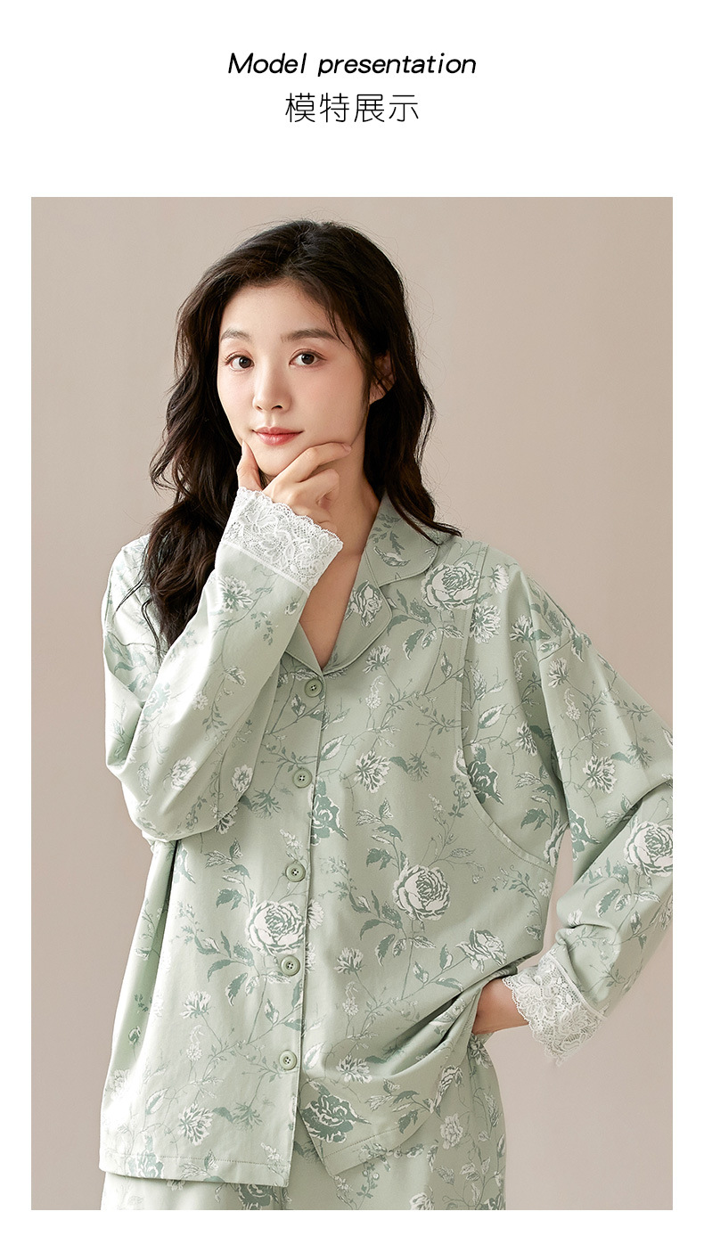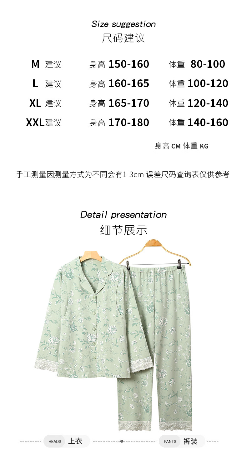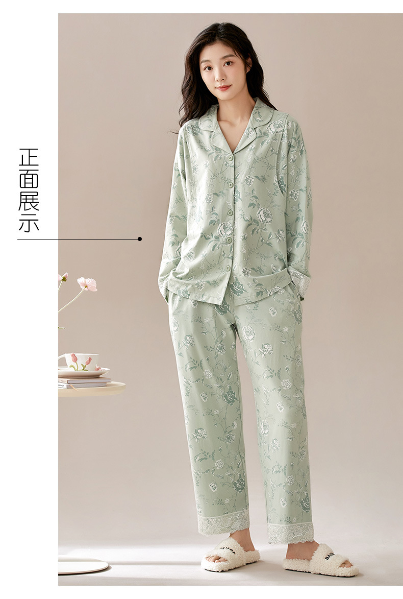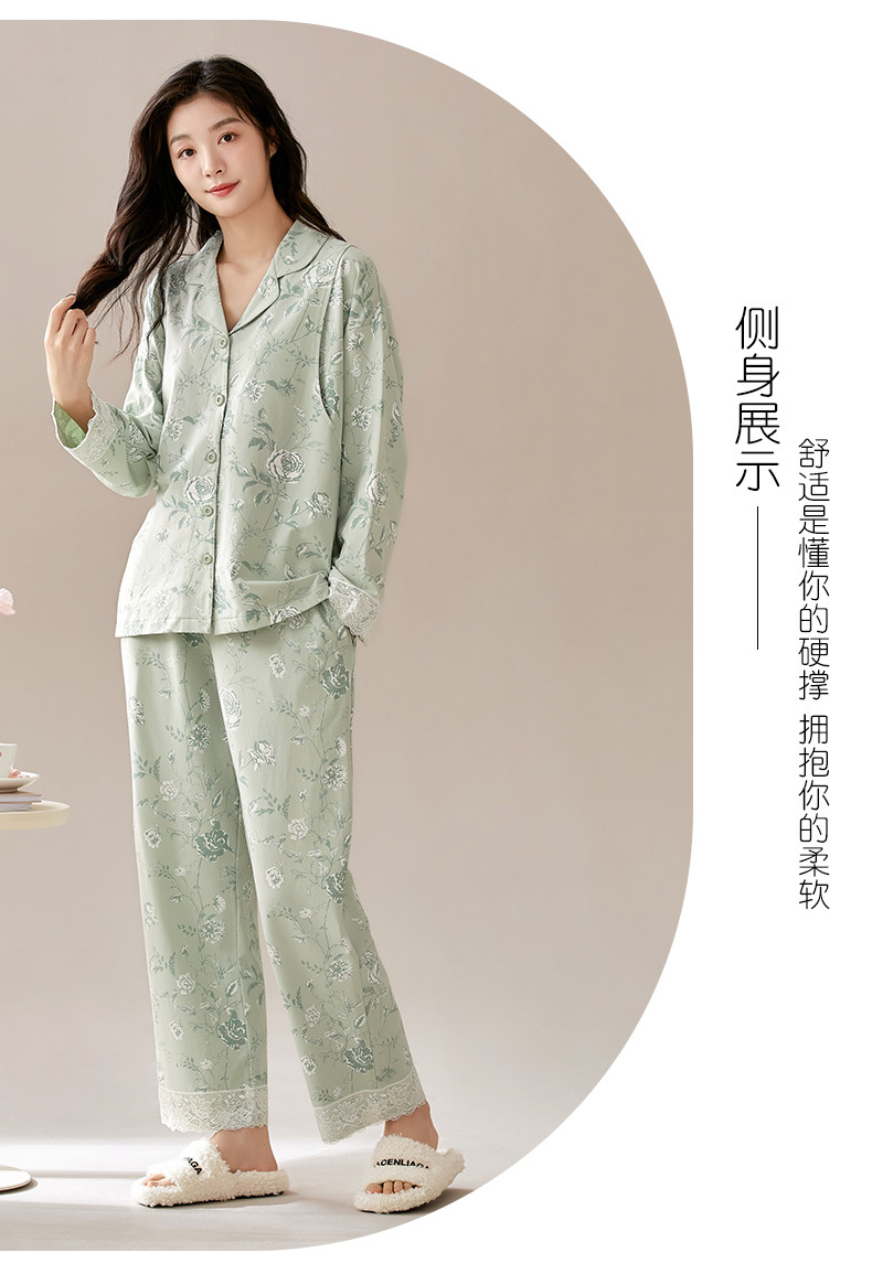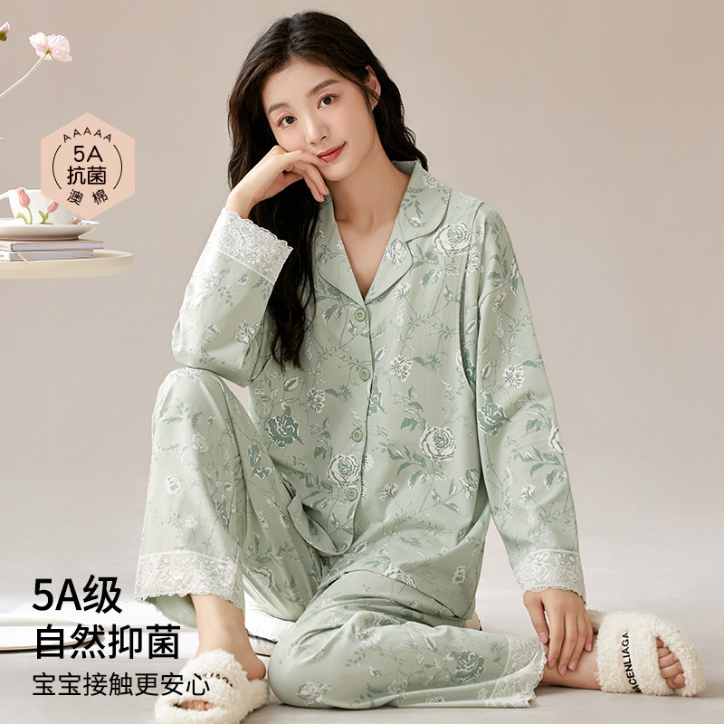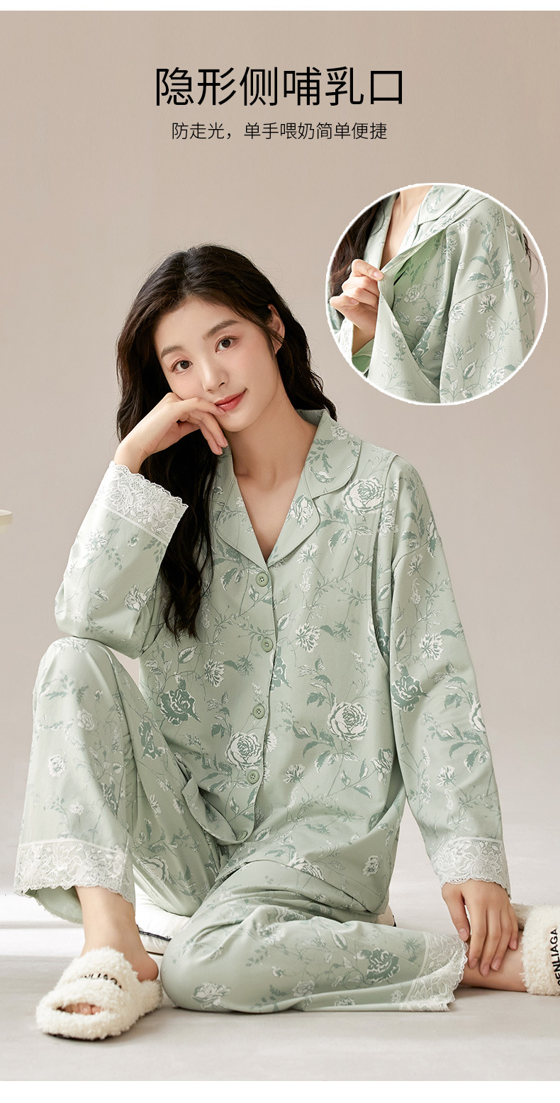 가을과 겨울 새로운 여성의 잠옷 5a 항균 문 의류 사이드 오픈 모유 수유 의류 긴 소매 풀 프레임 면 플러스 사이즈 2 종 세트스토어 가기
