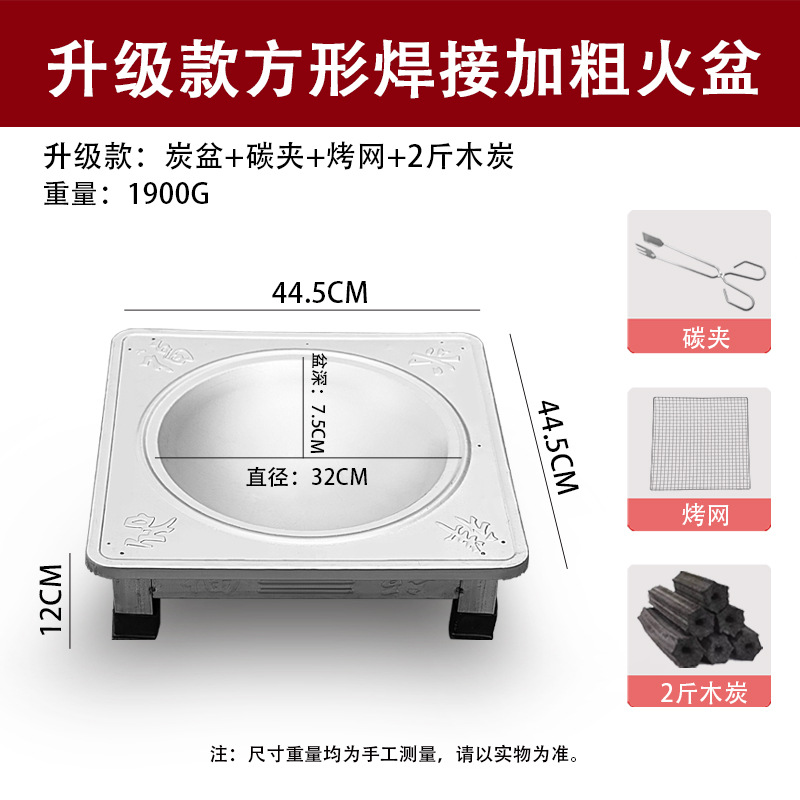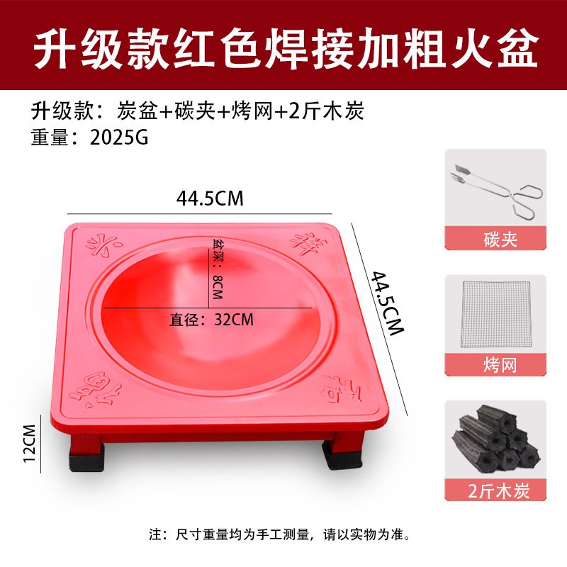 • 사변형 [업그레이드] 빨간색 두꺼운 베이킹 화로 + 베이킹 그물 + 카본 클립 + 숯