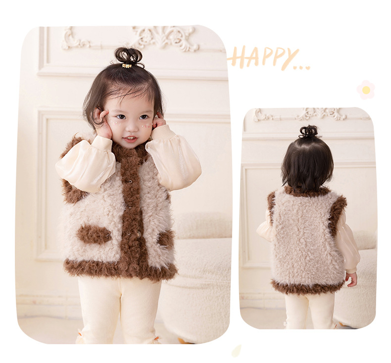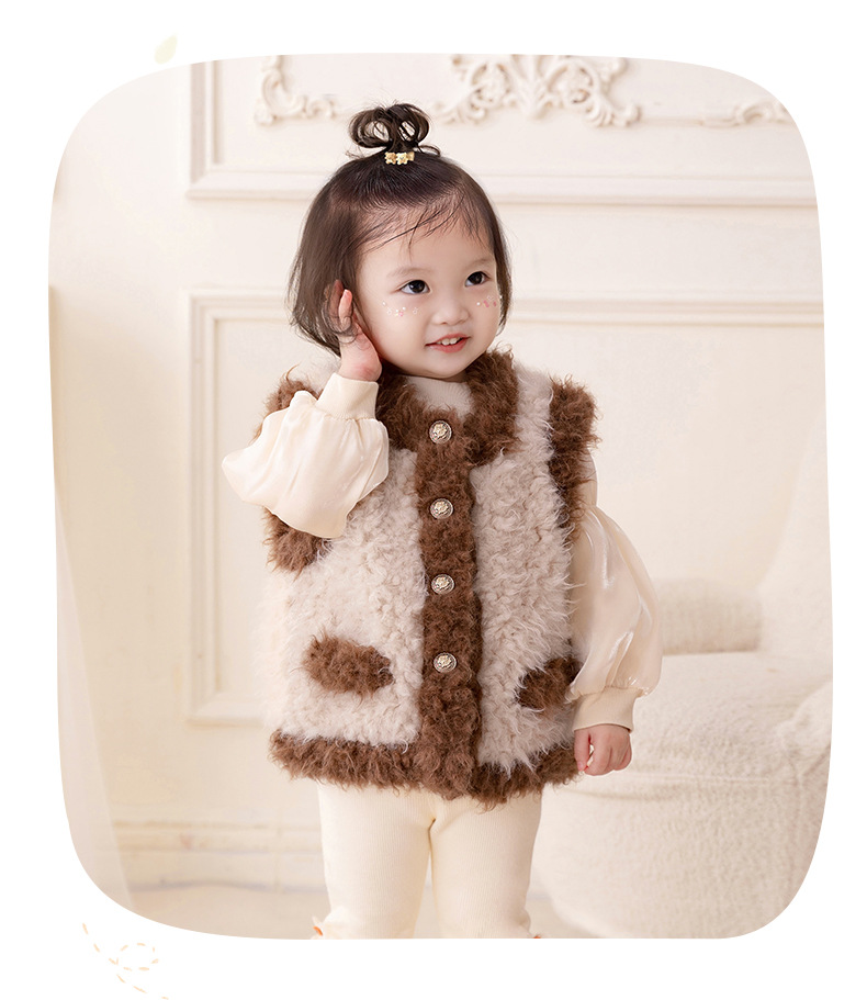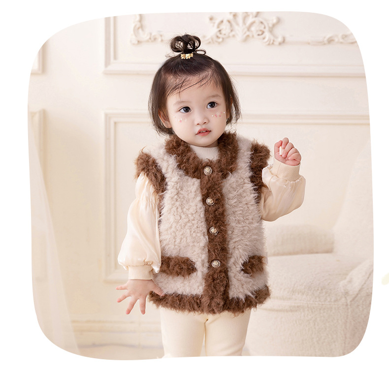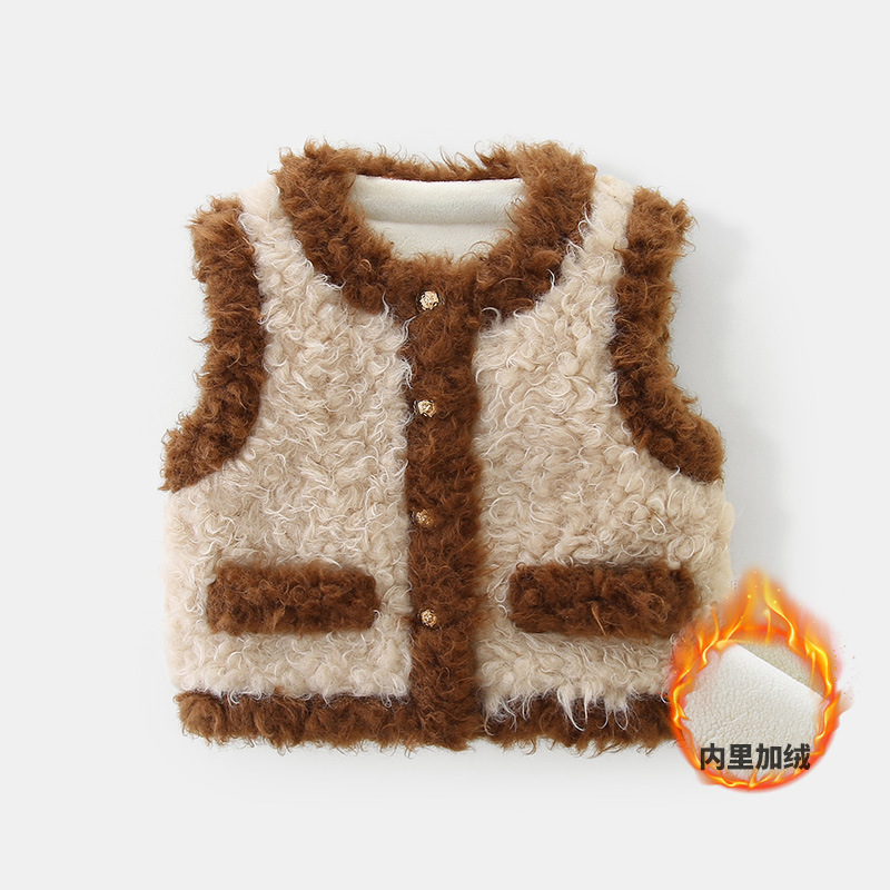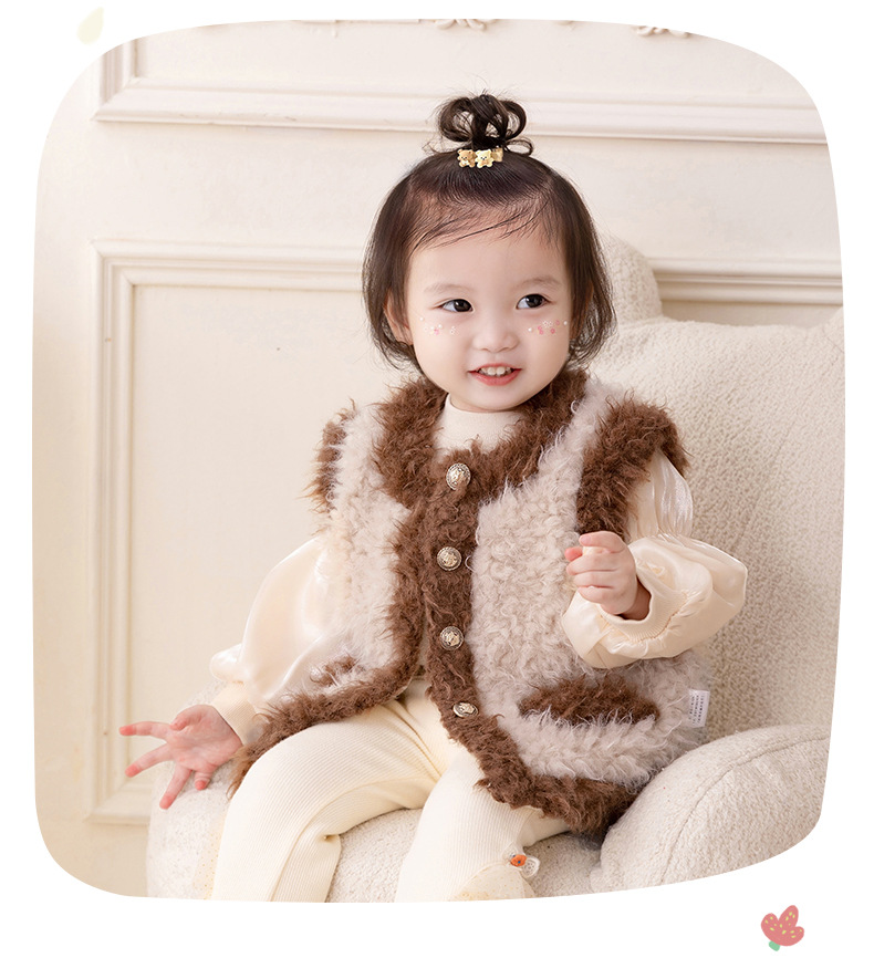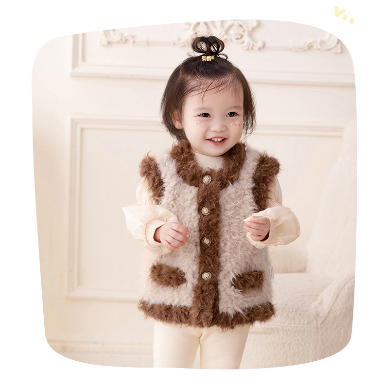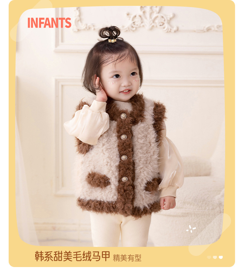 아이디어 소녀 플러시 패딩 조끼 2023 가을과 겨울 기모 따뜻한 조끼 아기 코트 3295