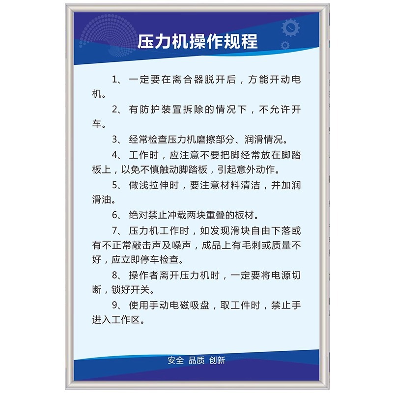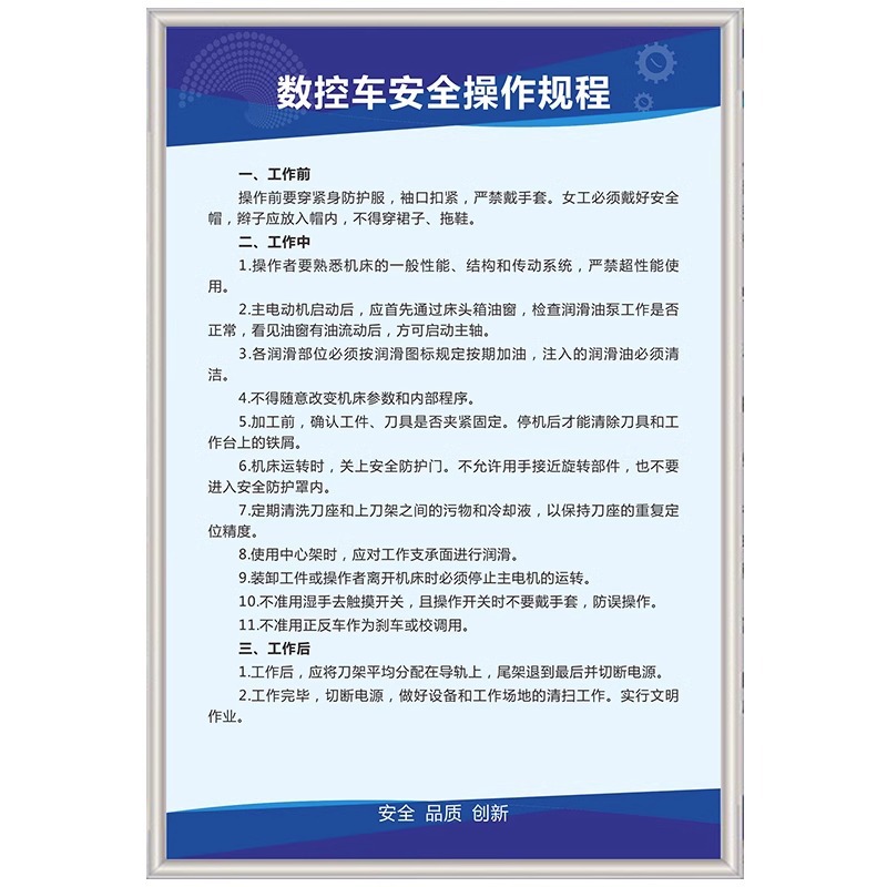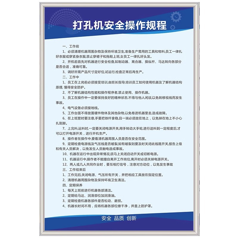 장비 안전 운영 규정 Lathe 톱 공기 압력 펀치 전기 용접 드릴링 기계 작업장 관리 벽 업 규칙 및 규정스토어 가기