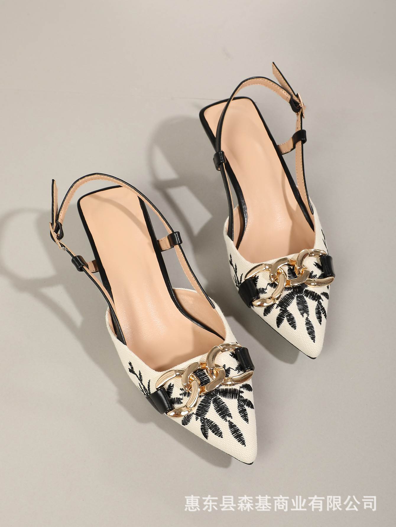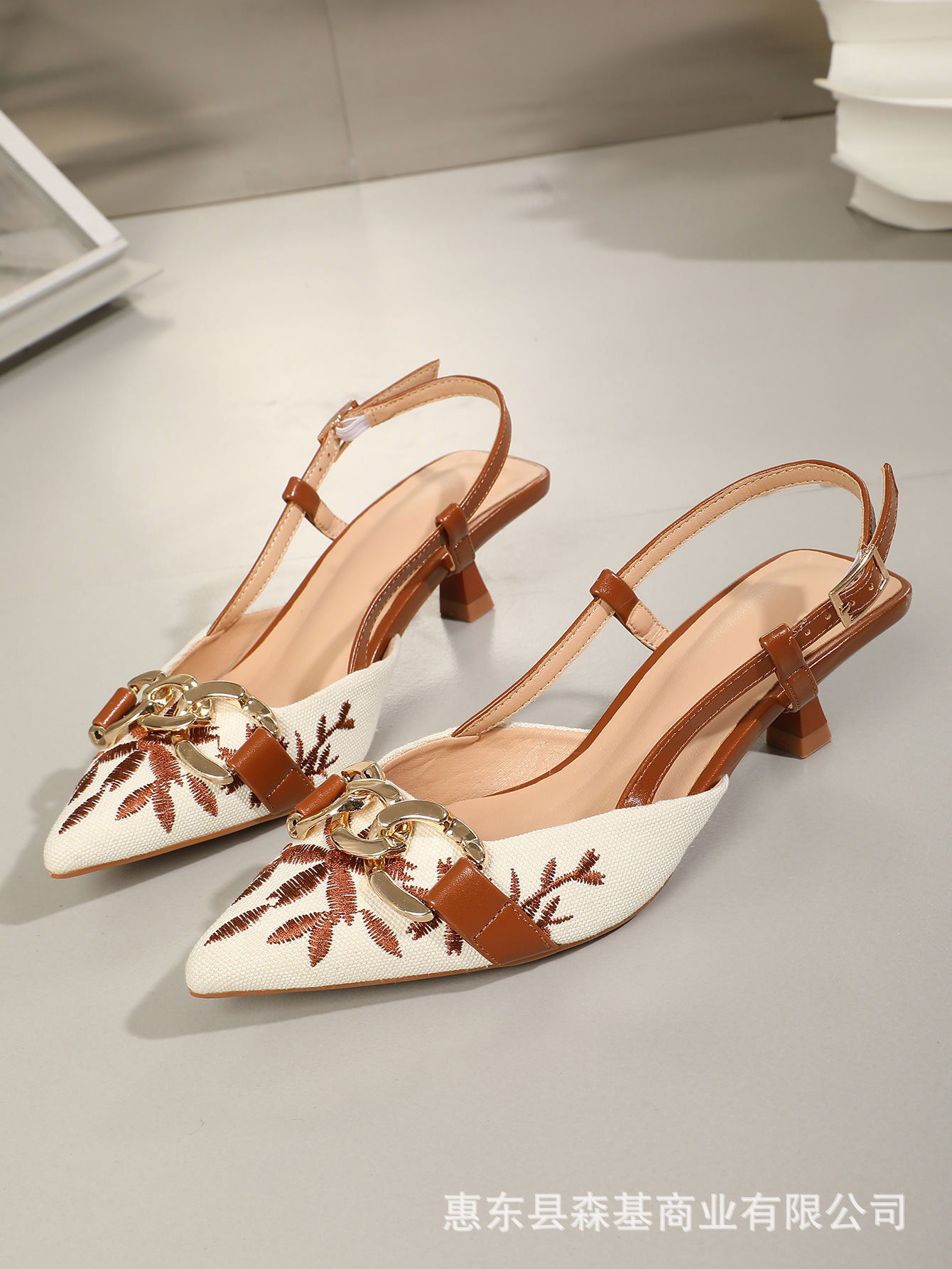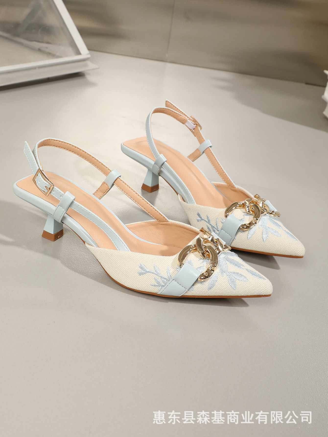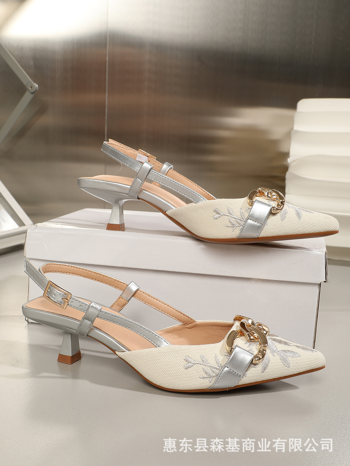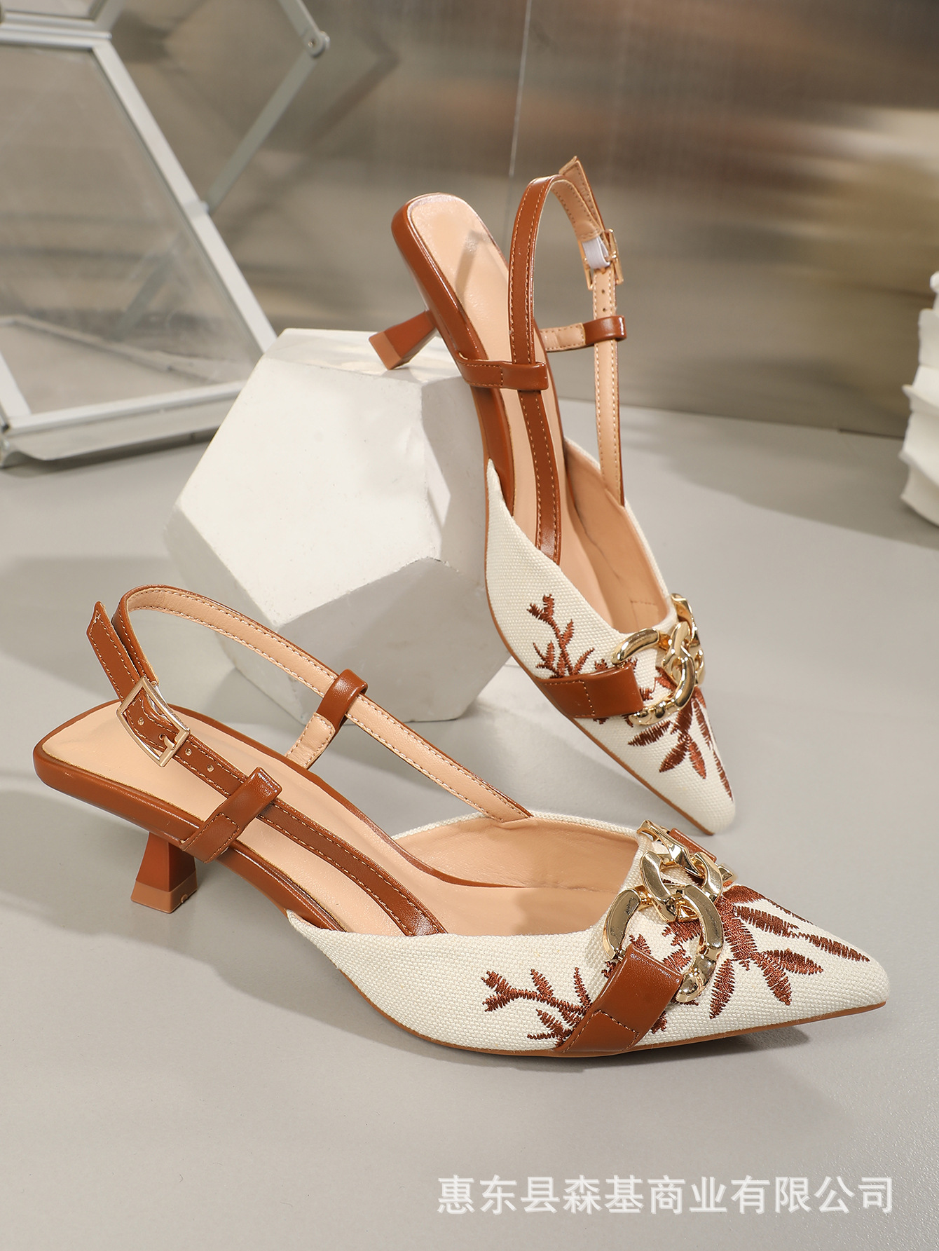유럽과 미국 패션 얇은 뒤꿈치 얕은 입 뒤 중공 깊은 패턴 철 버클 편안한 통근 하이힐 여성용 샌들스토어 가기