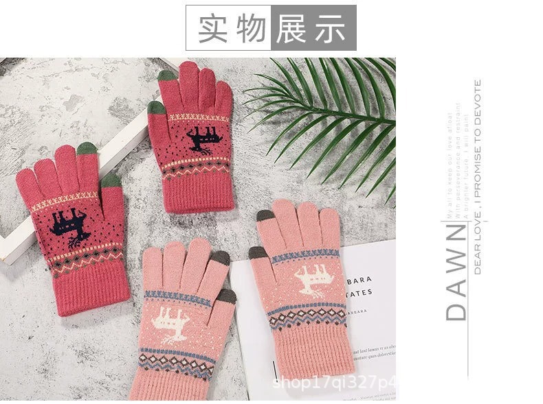 두꺼운 더블 레이어 사슴 학생 감기 방지 기모 귀여운 터치 스크린 제조 업체 도매 장갑 여자의 겨울 따뜻한 한국어 버전