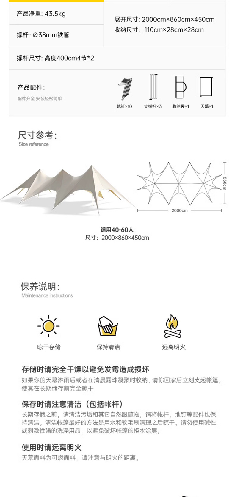 • 20 m 산풍 600D 나일론 천 (50-70 명)