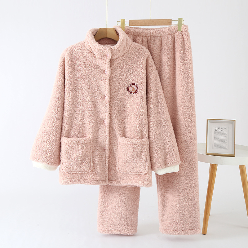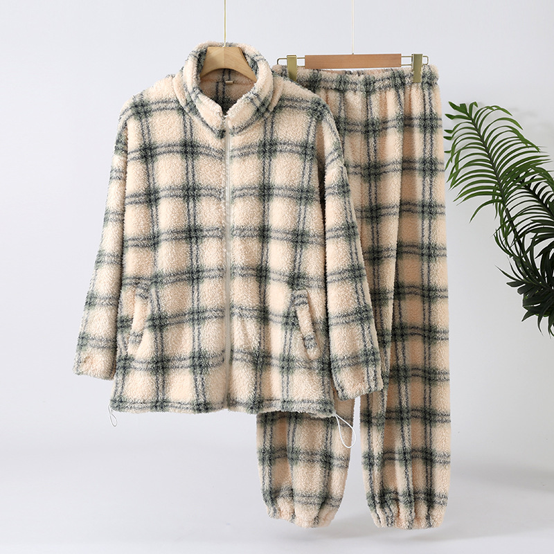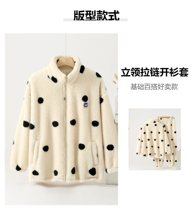 겨울 두꺼운 따뜻한 여성 잠옷 플란넬 두꺼운 지퍼 가디건 아웃웨어 양면 벨벳 가정복 투피스 세트스토어 가기