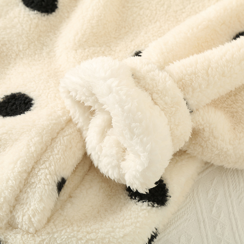 겨울 두꺼운 따뜻한 여성 잠옷 플란넬 두꺼운 지퍼 가디건 아웃웨어 양면 벨벳 가정복 투피스 세트