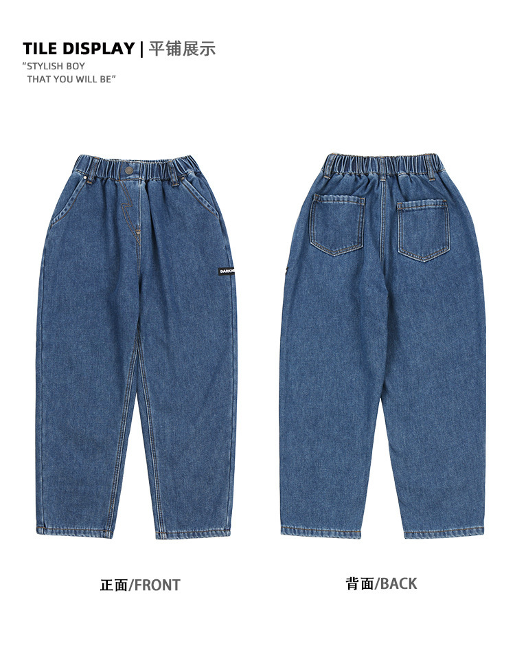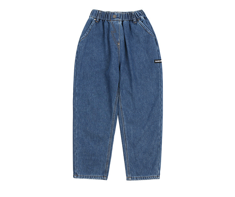 DK 아동복 가을과 겨울 새로운 소년 기모 청바지 큰 어린이 캐주얼 스트레이트 바지 따뜻한 유행 바지스토어 가기