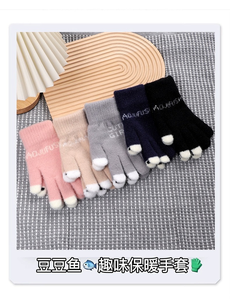 장갑 여성용 겨울 새로운 양모 니트 소녀 터치 스크린 만화 두꺼운 학생 오픈 손가락 쓰기 놀이 공장 도매스토어 가기