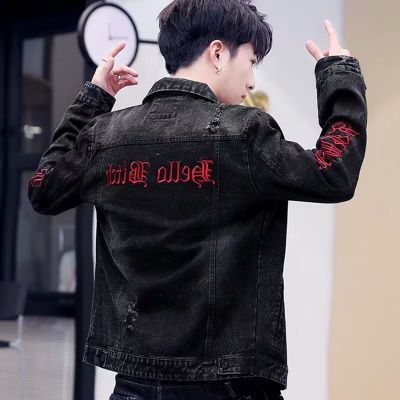 남자의 데님 재킷 봄과 가을 새로운 한국 스타일 슬림 핏 캐주얼 카고 재킷 유행 라펠 탑 재킷