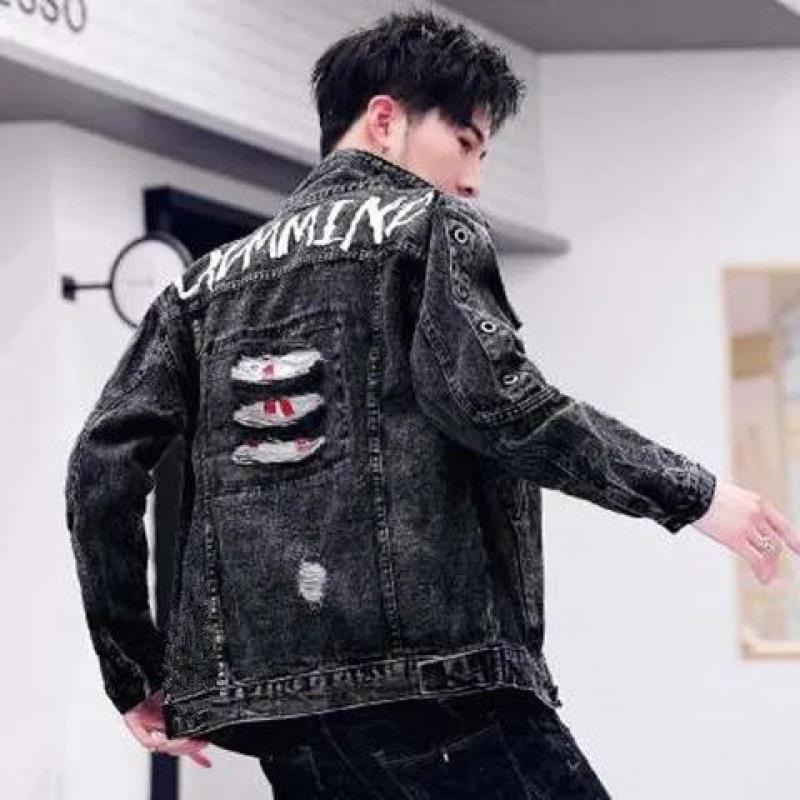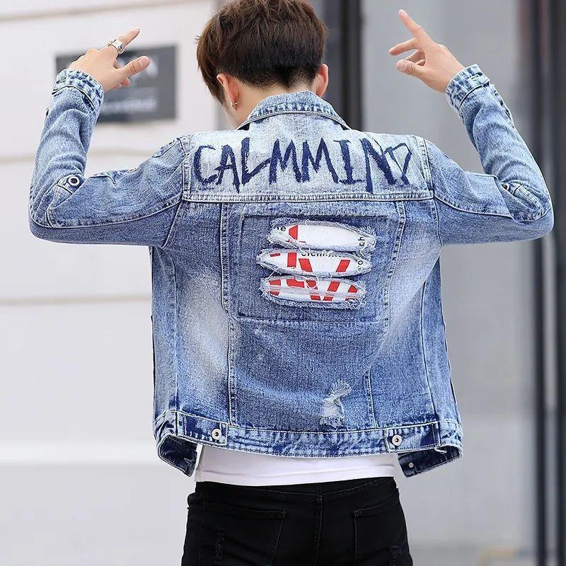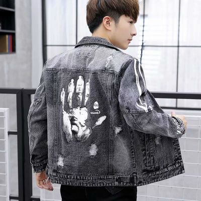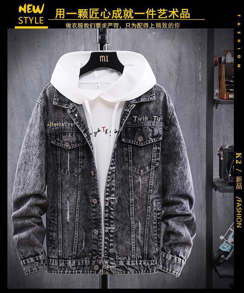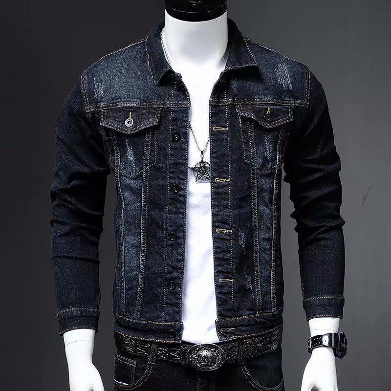 남자의 데님 재킷 봄과 가을 새로운 한국 스타일 슬림 핏 캐주얼 카고 재킷 유행 라펠 탑 재킷스토어 가기