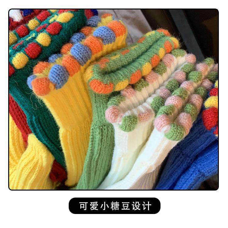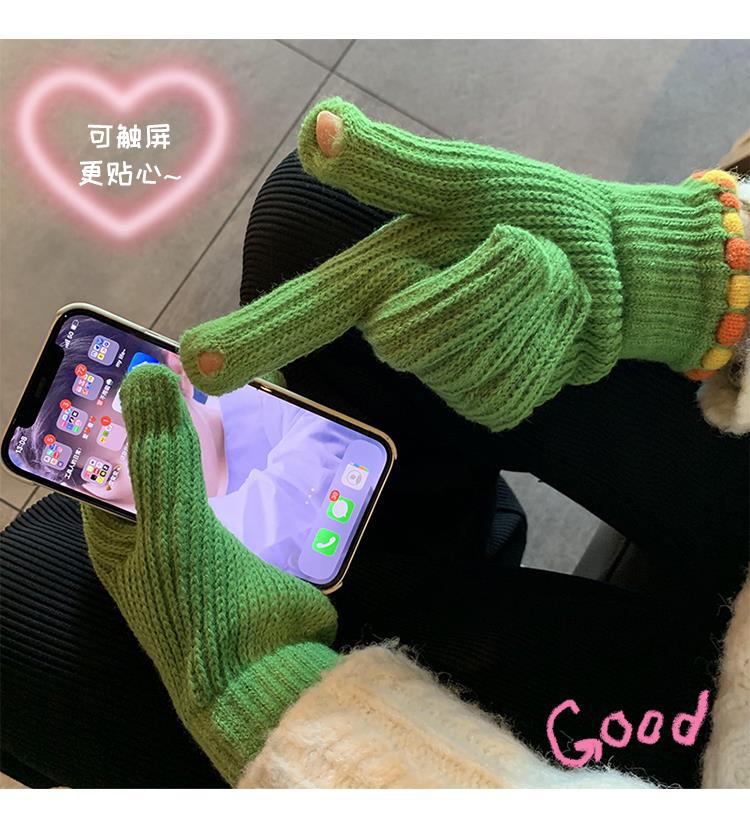 작은 설탕 콩 손가락 누출 양모 니트 장갑 여성용 겨울 한국식 단색 터치 스크린 따뜻한 방한 사이클링 손가락