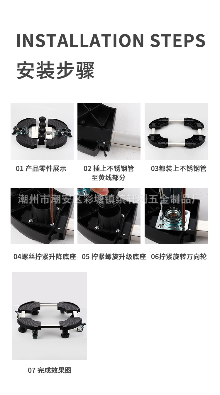 스탠드형 에어컨 받침대 플라스틱 원형 화분 가스통 이동식 높이 조절 트레이 안정화 받침대
