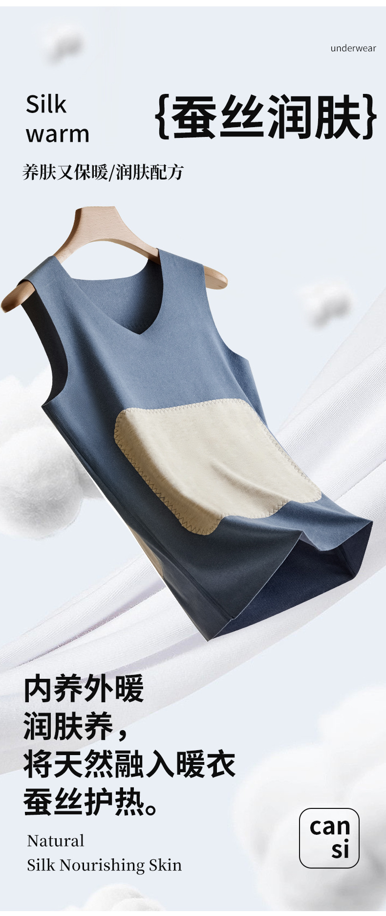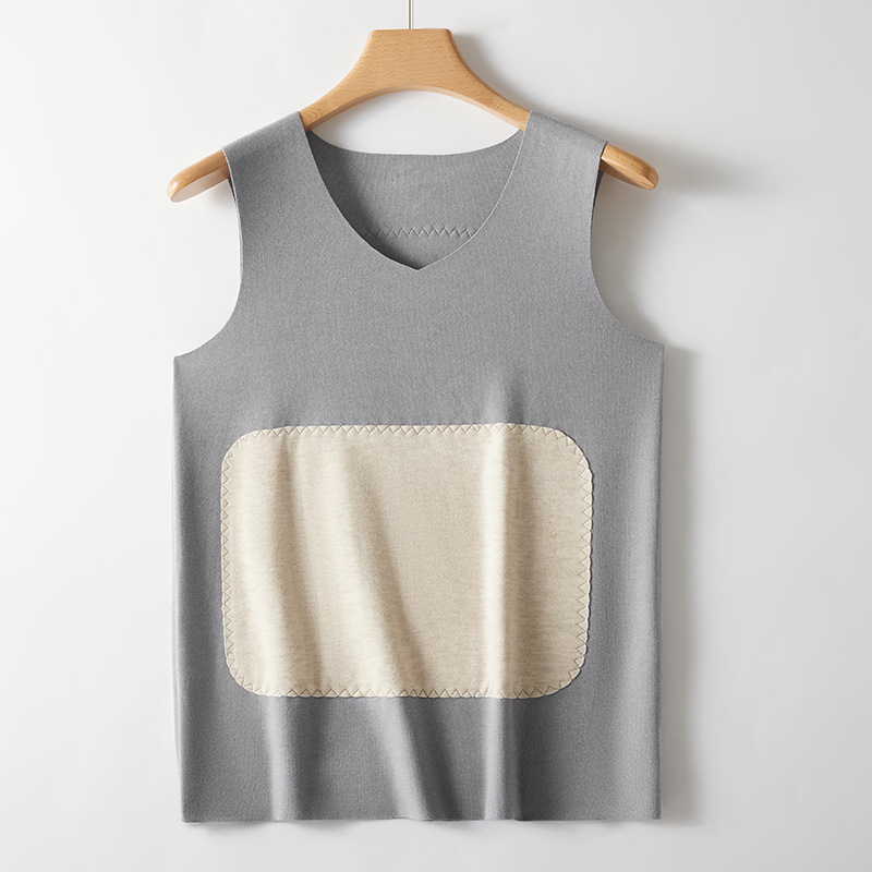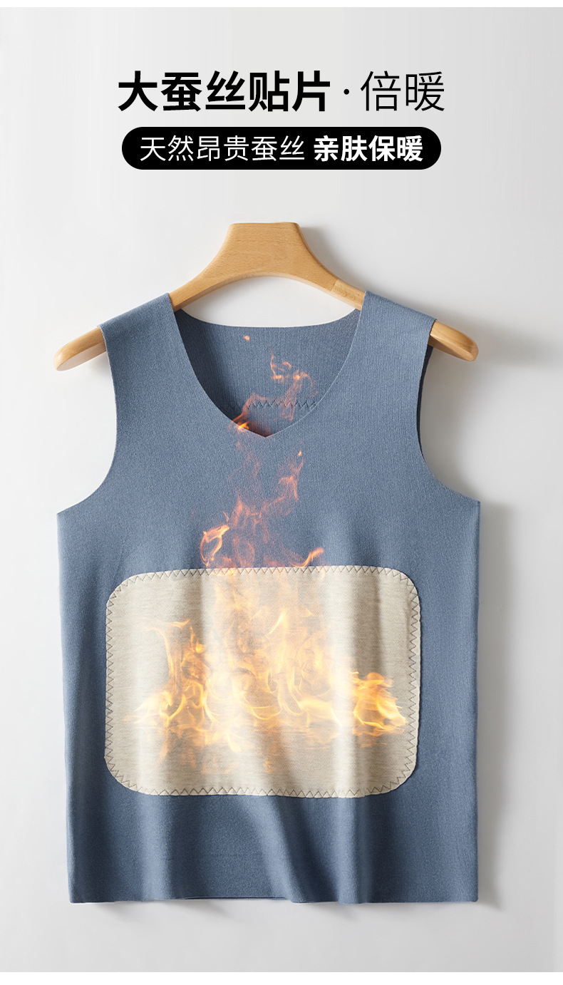 새로운 캐시미어 실크 패치 따뜻한 조끼 남자의 기모 두꺼운 가을과 겨울베이스 원활한 난방 조끼 탑
