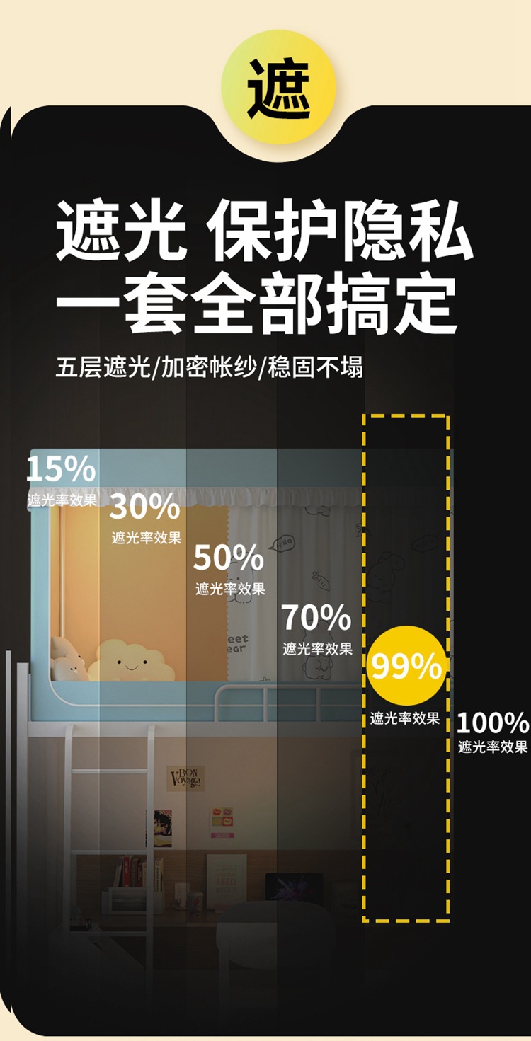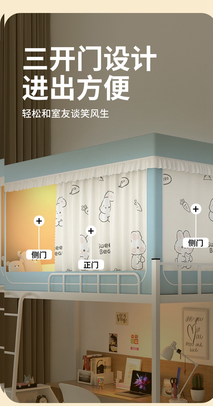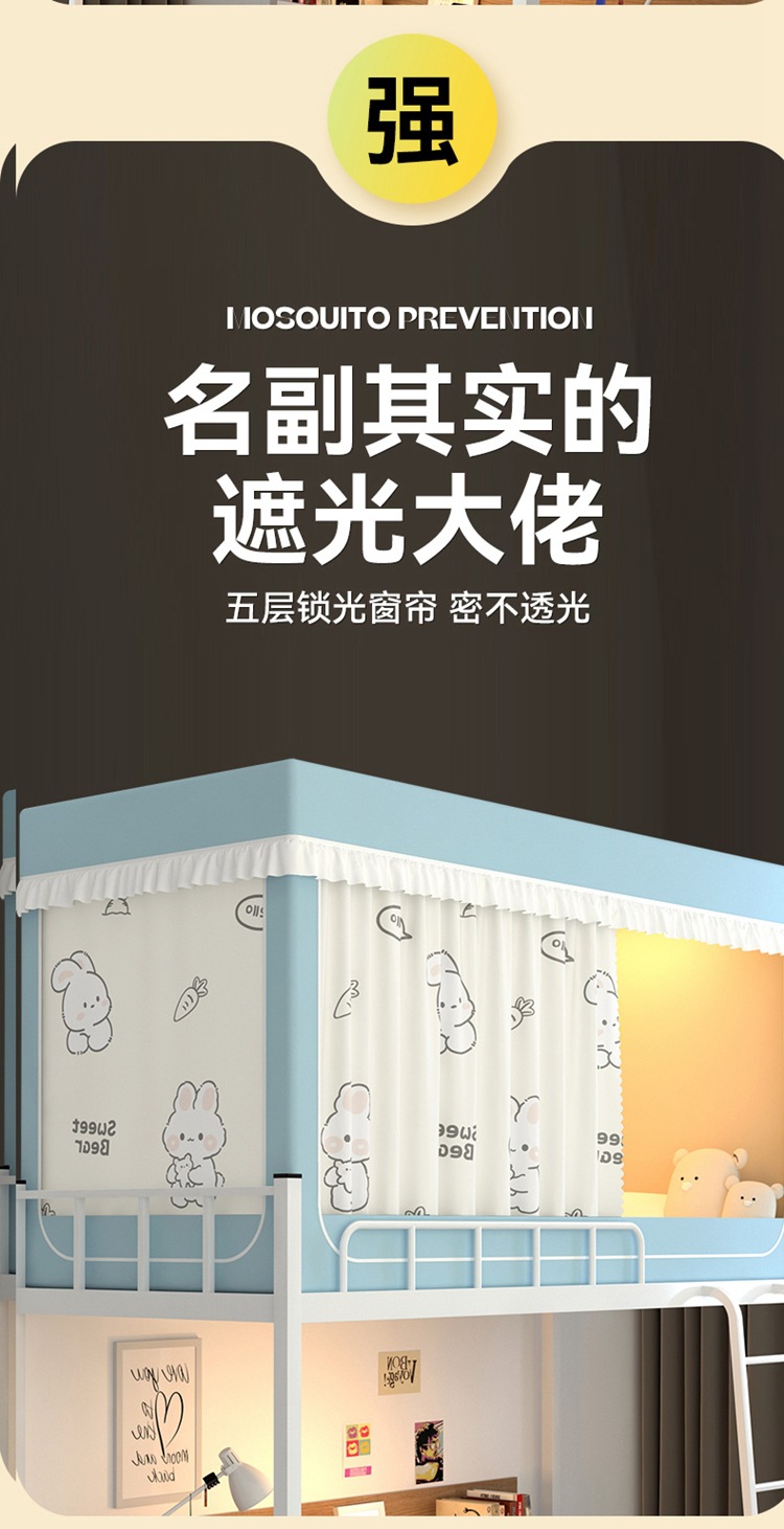 2023 년 신입생 기숙사 양면 차광 코팅 깊은 수면 모기장 침대 커튼 일체형 상하부 이층 방진 텍스트 텐트