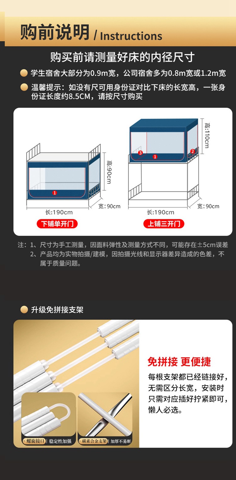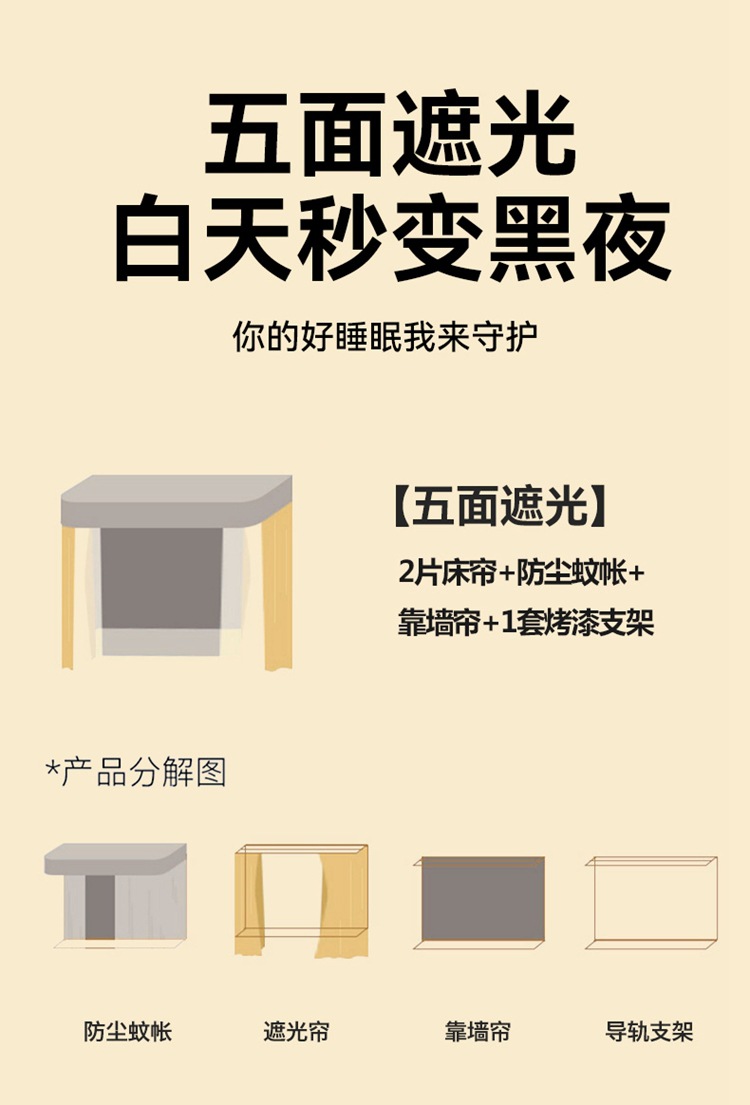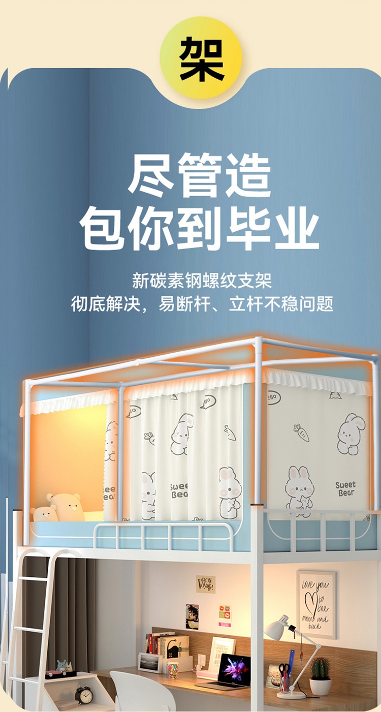 2023 년 신입생 기숙사 양면 차광 코팅 깊은 수면 모기장 침대 커튼 일체형 상하부 이층 방진 텍스트 텐트스토어 가기
