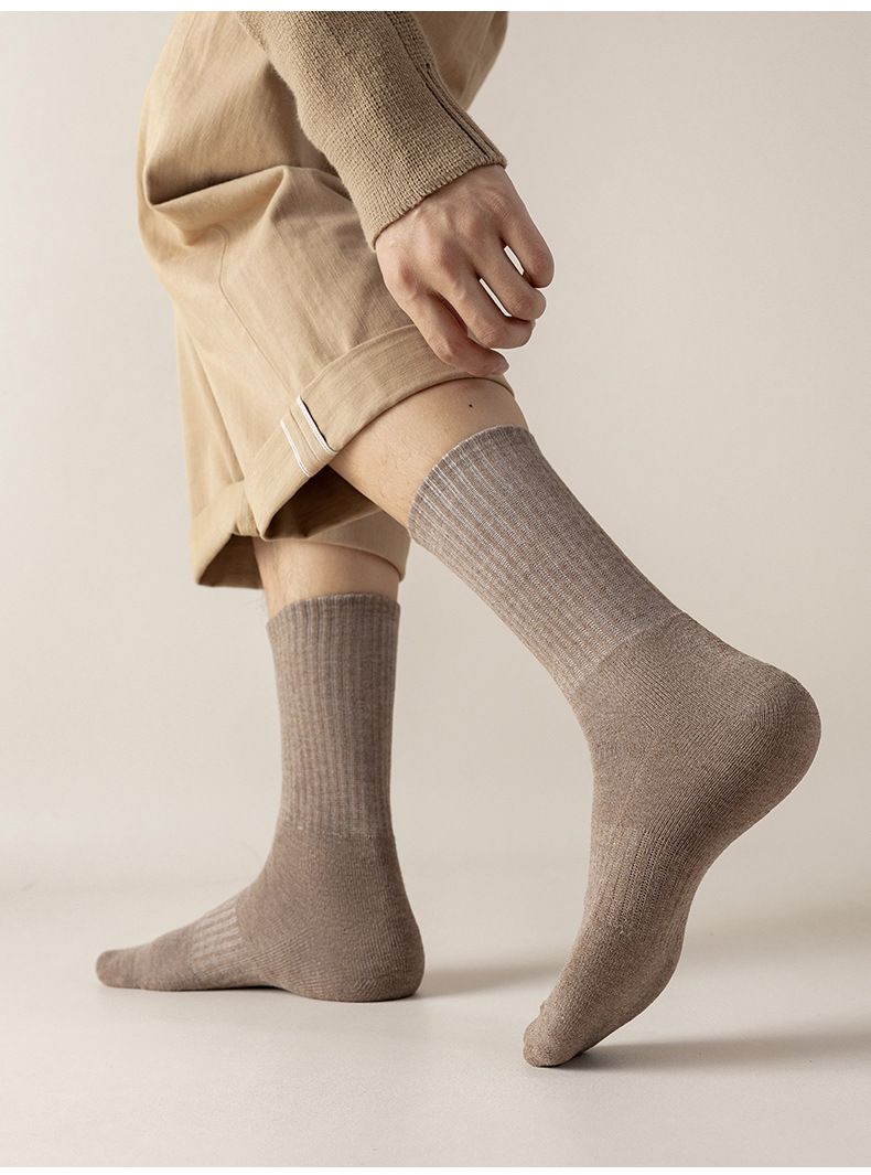 겨울 두꺼운 양말 남성용 테리 양말 단색 따뜻한 중간 길이 양말 면 가을과 겨울 바닥 양말 여분의 두꺼운 방한 양말