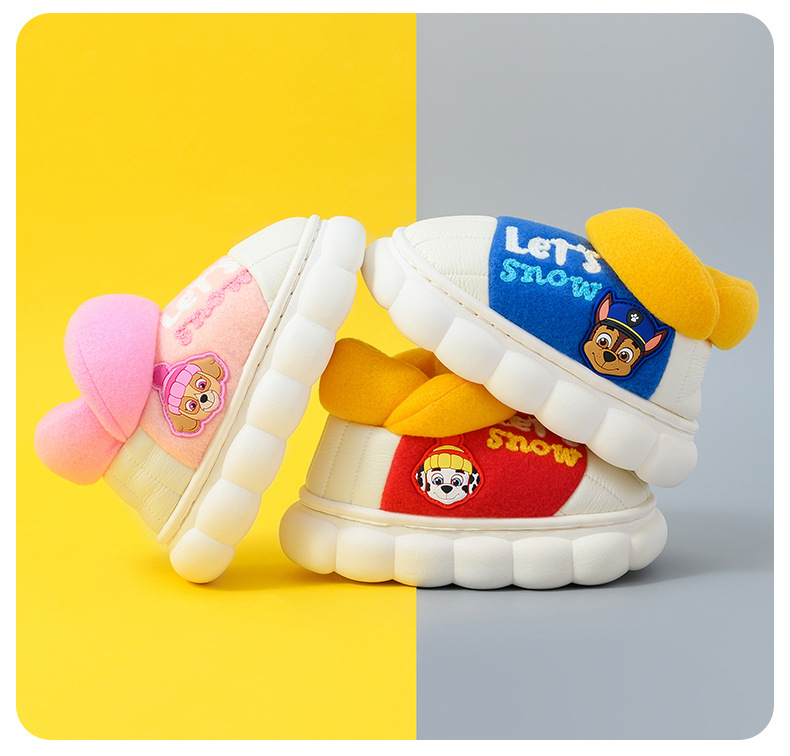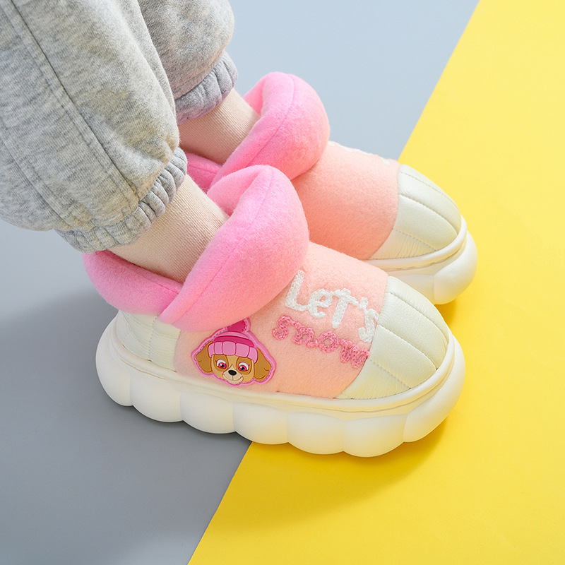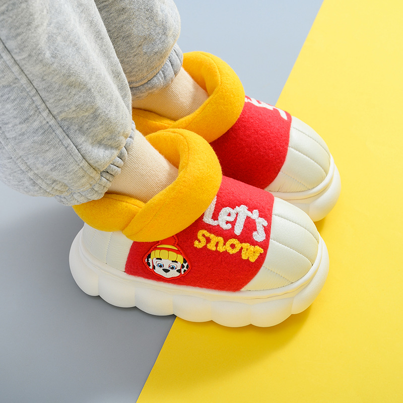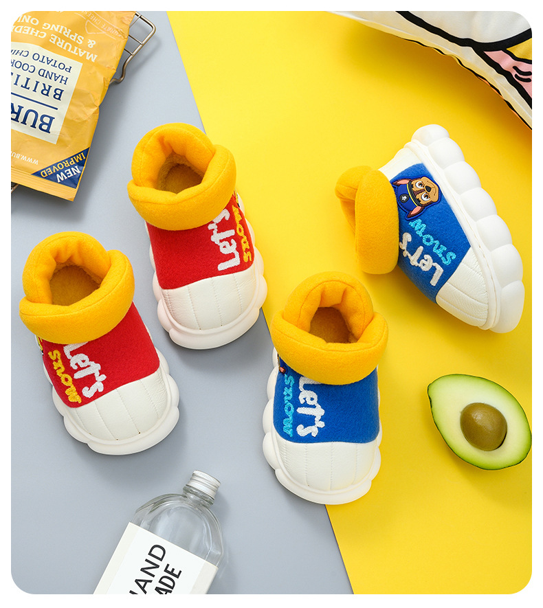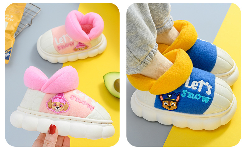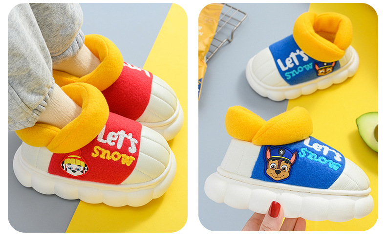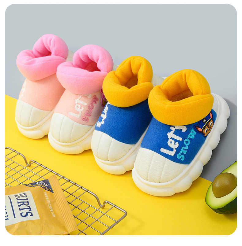 왕 왕 팀 어린이 면화 신발 아기 겨울 2023 면 슬리퍼와 새로운 여성 어린이 가방 푹신한 슬리퍼 어린이 홈 신발스토어 가기