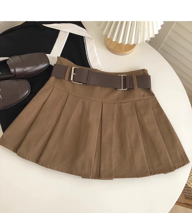 벨트가 있는 하이웨이스트 플리츠 스커트 여아용 2025 봄 가을 신상 한국 스타일 다용도 노출방지 카키색 반바지 스커트스토어 가기