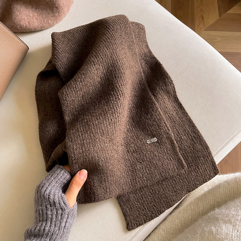 단색 작은 철 표준 울 한국 스타일 고급 따뜻한 니트 울 스카프 두꺼운 겨울 스카프 여성 스카프스토어 가기
