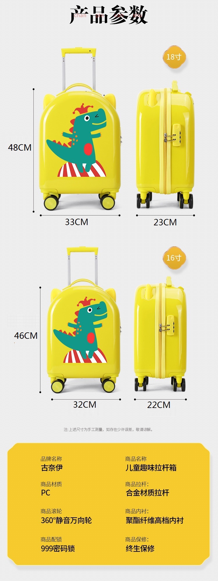 새로운 어린이 수하물 남성용 및 여성용 소형 16 탑승 라이트 여행 비밀번호 박스 18 인치 시트 풀로드 만화 상자