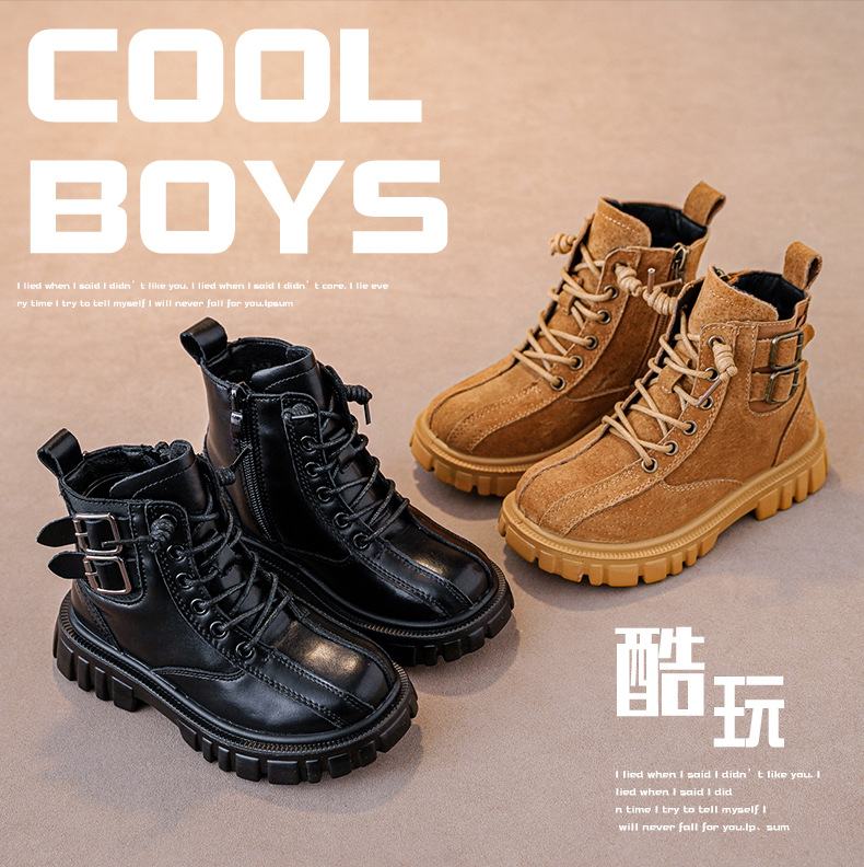 남아 '마틴 부츠 부드러운 단독 미끄럼 방지 가을과 겨울 신상품 남아 옐로우 부츠 겨울 기모 중대형 어린이 부츠스토어 가기