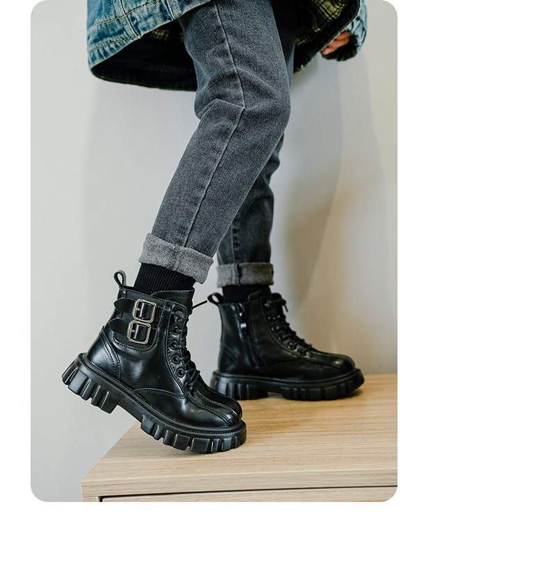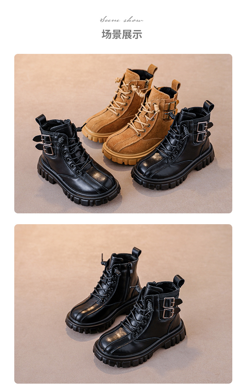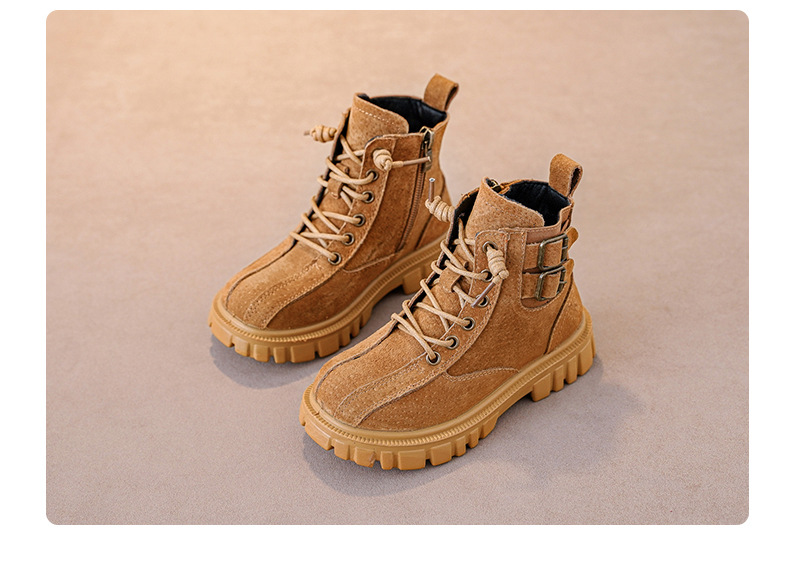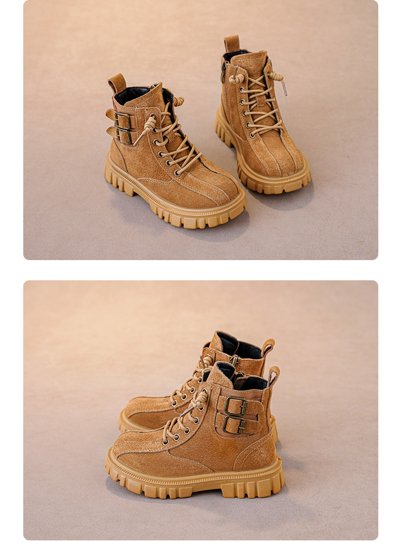 남아 '마틴 부츠 부드러운 단독 미끄럼 방지 가을과 겨울 신상품 남아 옐로우 부츠 겨울 기모 중대형 어린이 부츠