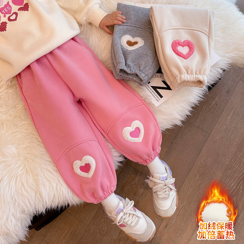 어린 소녀 기모 사랑 캐주얼 바지 가을과 겨울 원피스 유치원 하나 벨벳 스웨트 팬츠 새로운 아기 두꺼운 스포츠 바지스토어 가기
