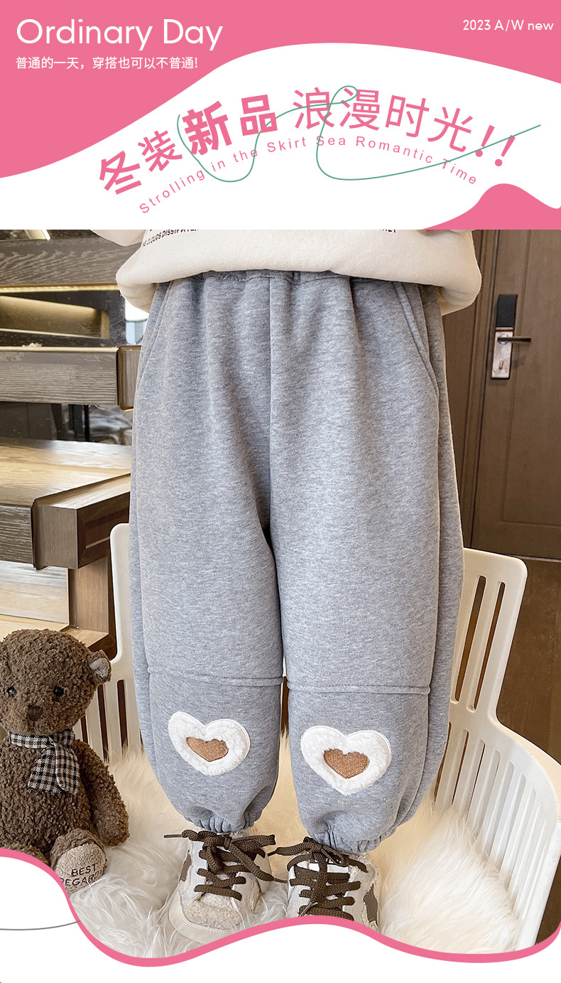 어린 소녀 기모 사랑 캐주얼 바지 가을과 겨울 원피스 유치원 하나 벨벳 스웨트 팬츠 새로운 아기 두꺼운 스포츠 바지