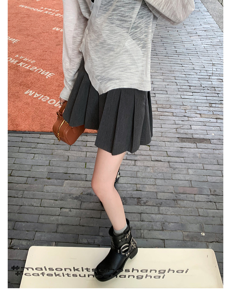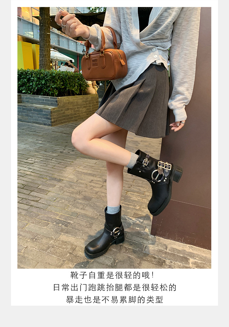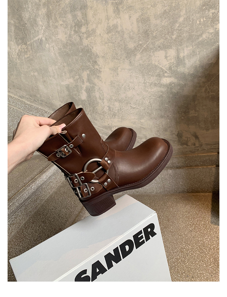포도 엄마 2023 가을과 겨울 새로운 라운드 발가락 빈티지 짧은 부츠 벨트 버클 두꺼운 굽 마틴 부츠 두꺼운 단독 웨스턴 카우보이 부츠