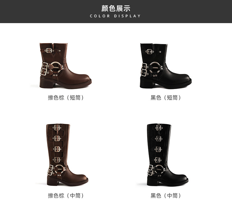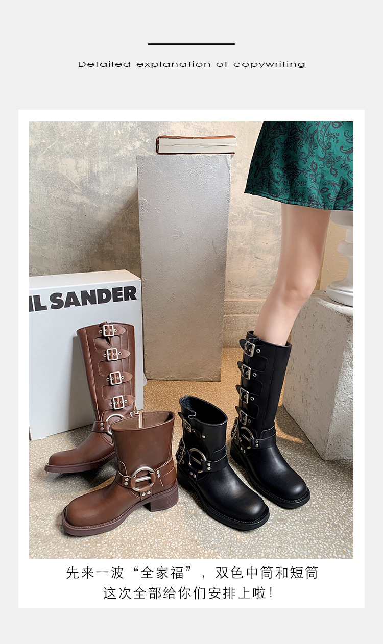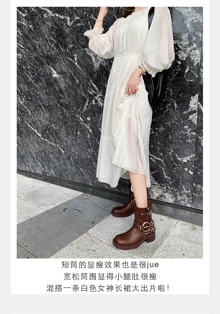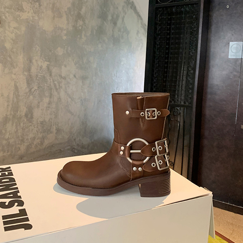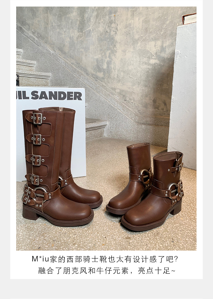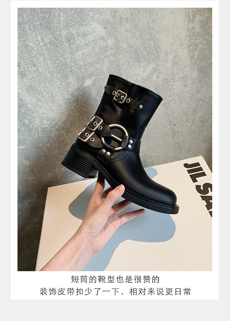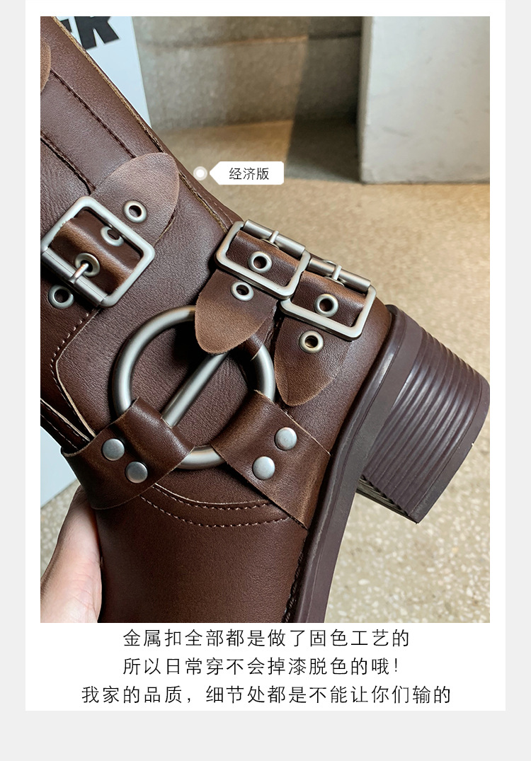 포도 엄마 2023 가을과 겨울 새로운 라운드 발가락 빈티지 짧은 부츠 벨트 버클 두꺼운 굽 마틴 부츠 두꺼운 단독 웨스턴 카우보이 부츠스토어 가기